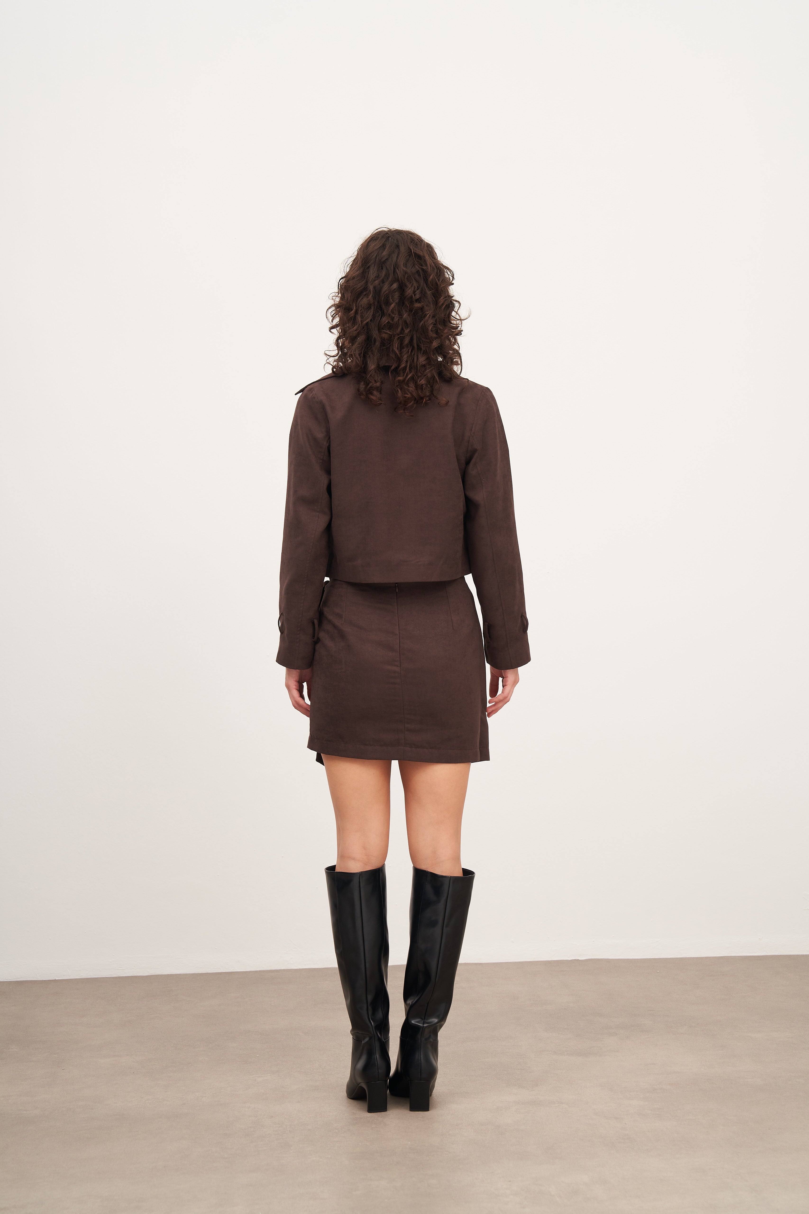 WINGCOTT Acı Kahve Süet Kemerli Kısa Ceket