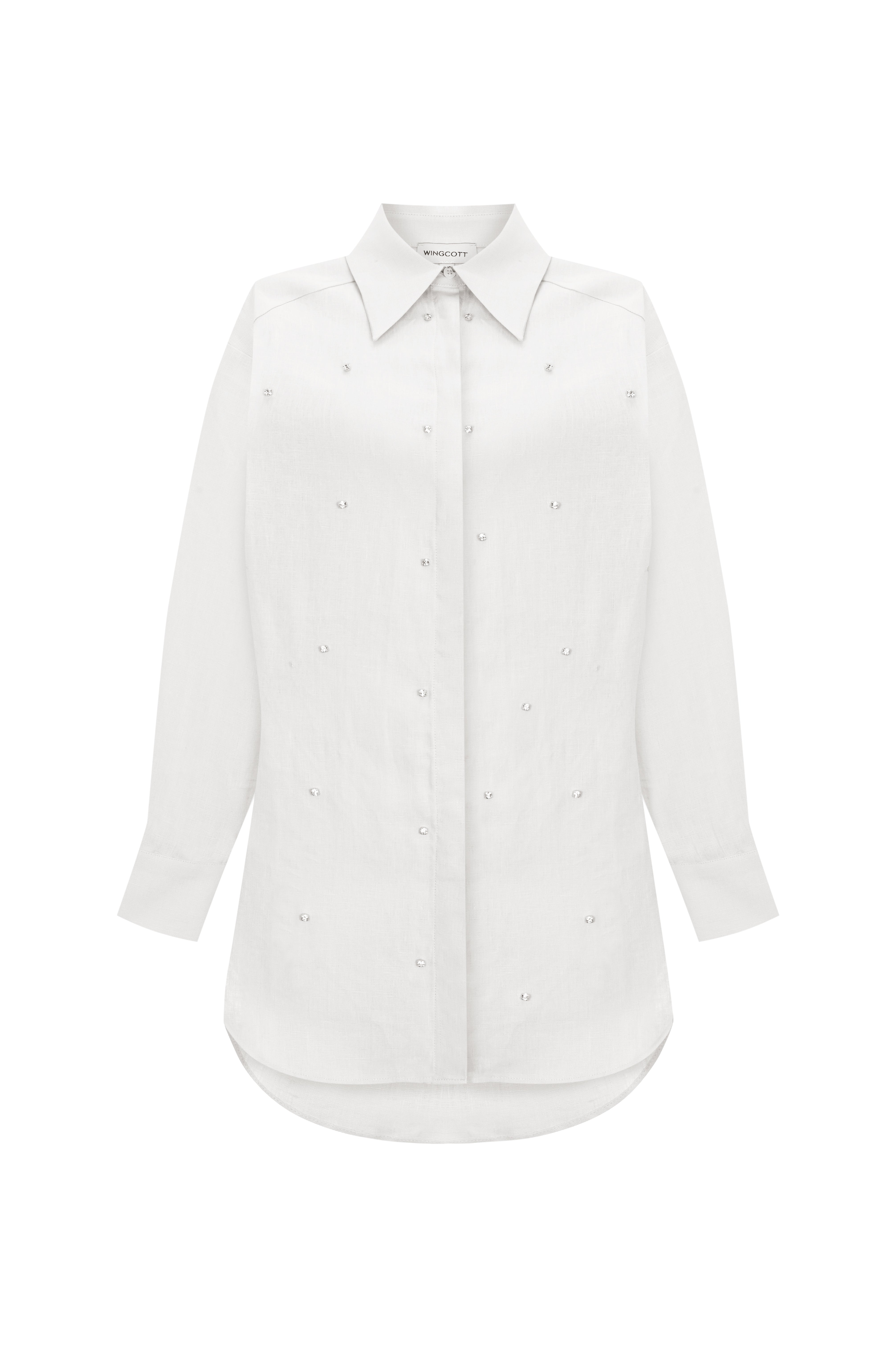 WINGCOTT Bağlama Detaylı Taş İşlemeli Keten Gömlek