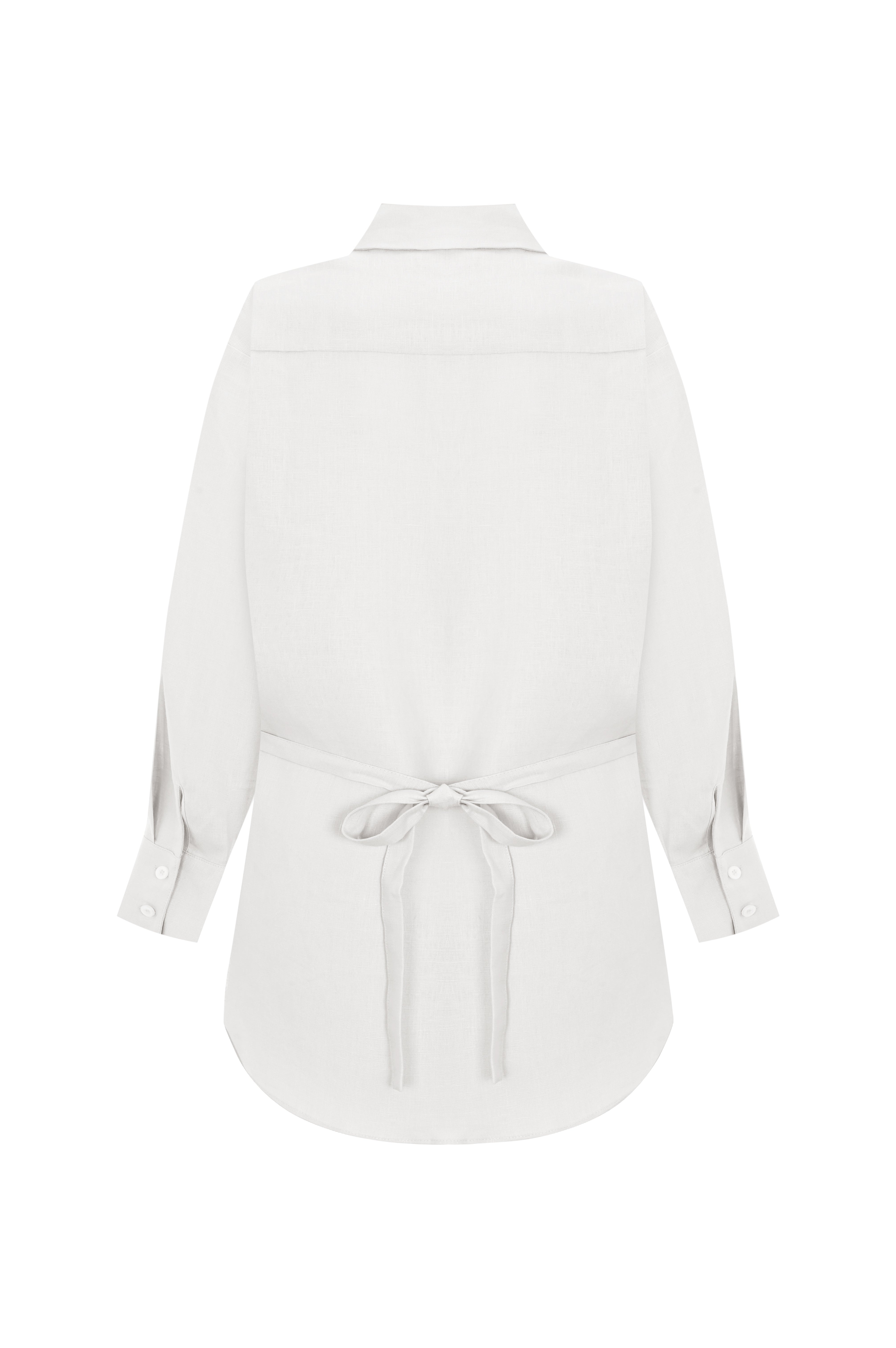 Bağlama Detaylı Taş İşlemeli Keten Gömlek