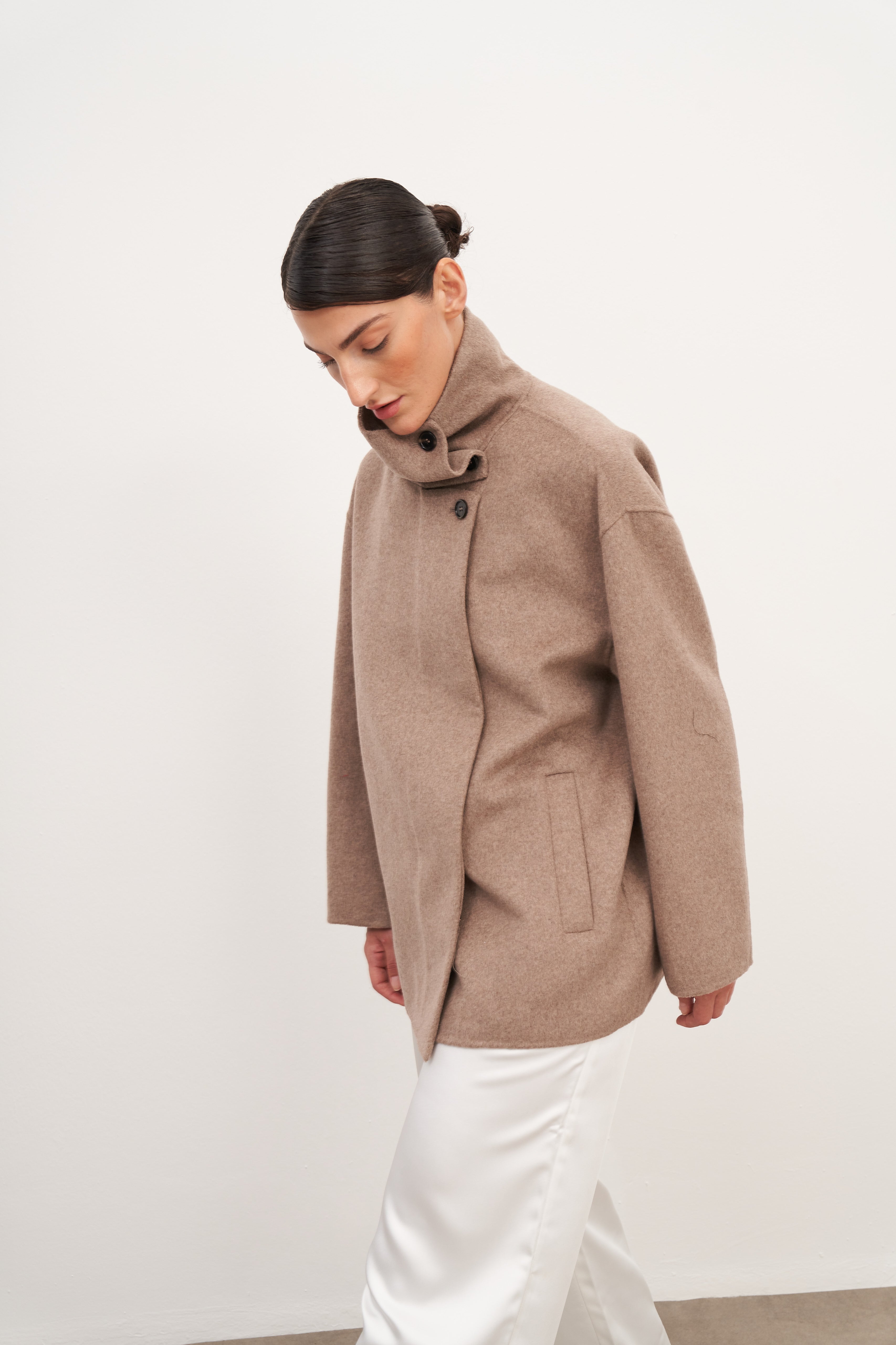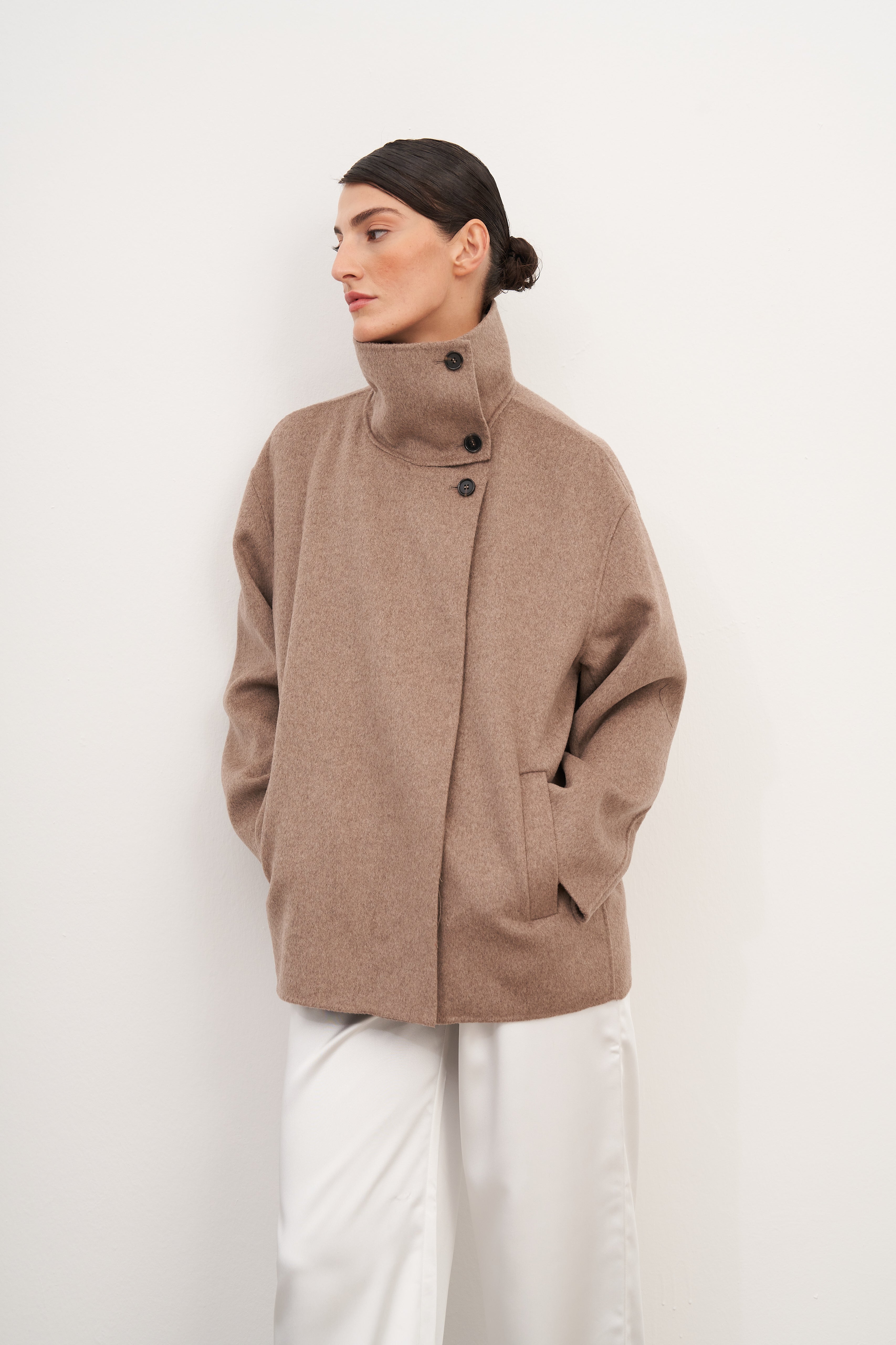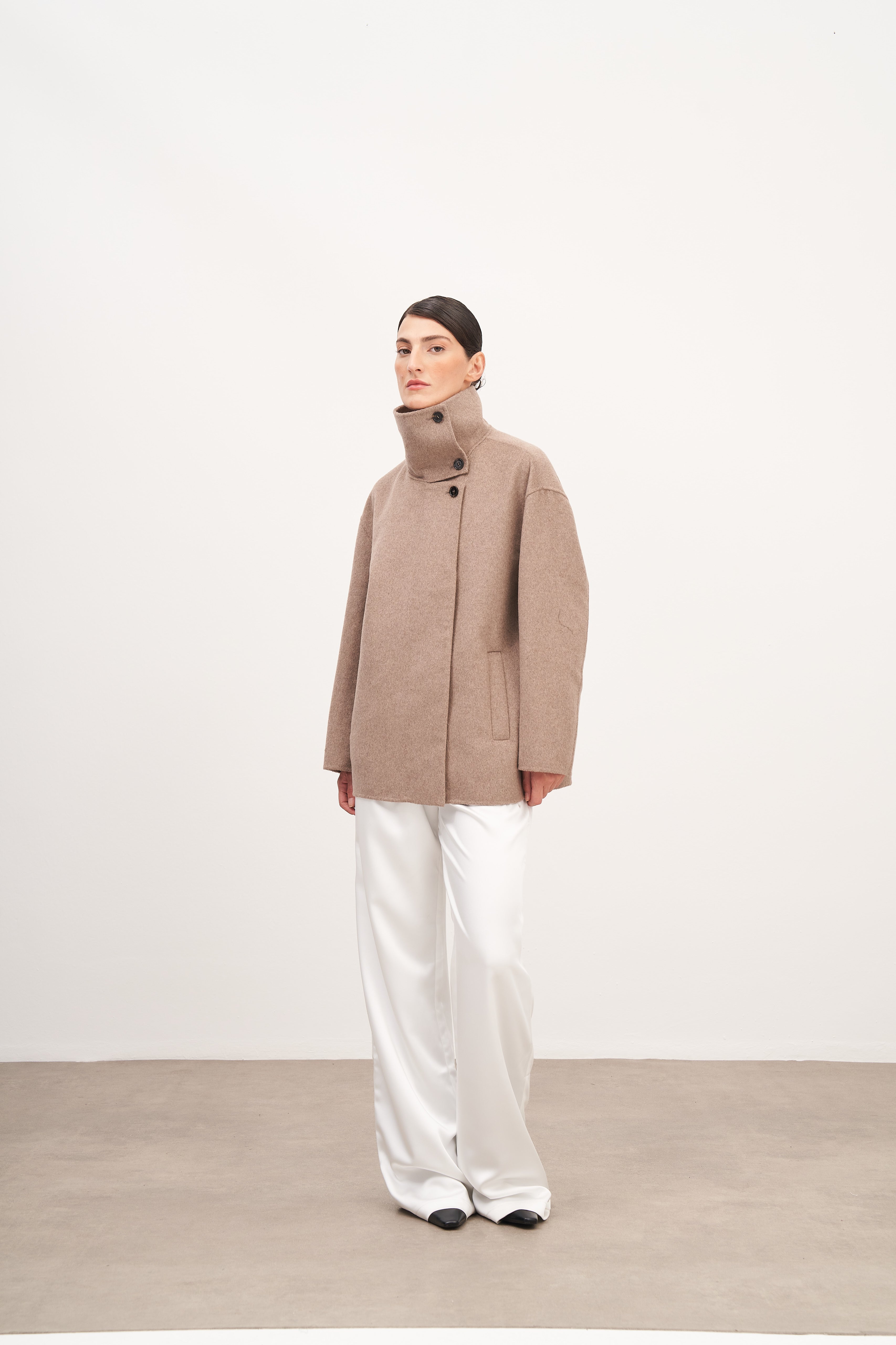 WINGCOTT Bej Yüksek Yaka Kaşe Kaban