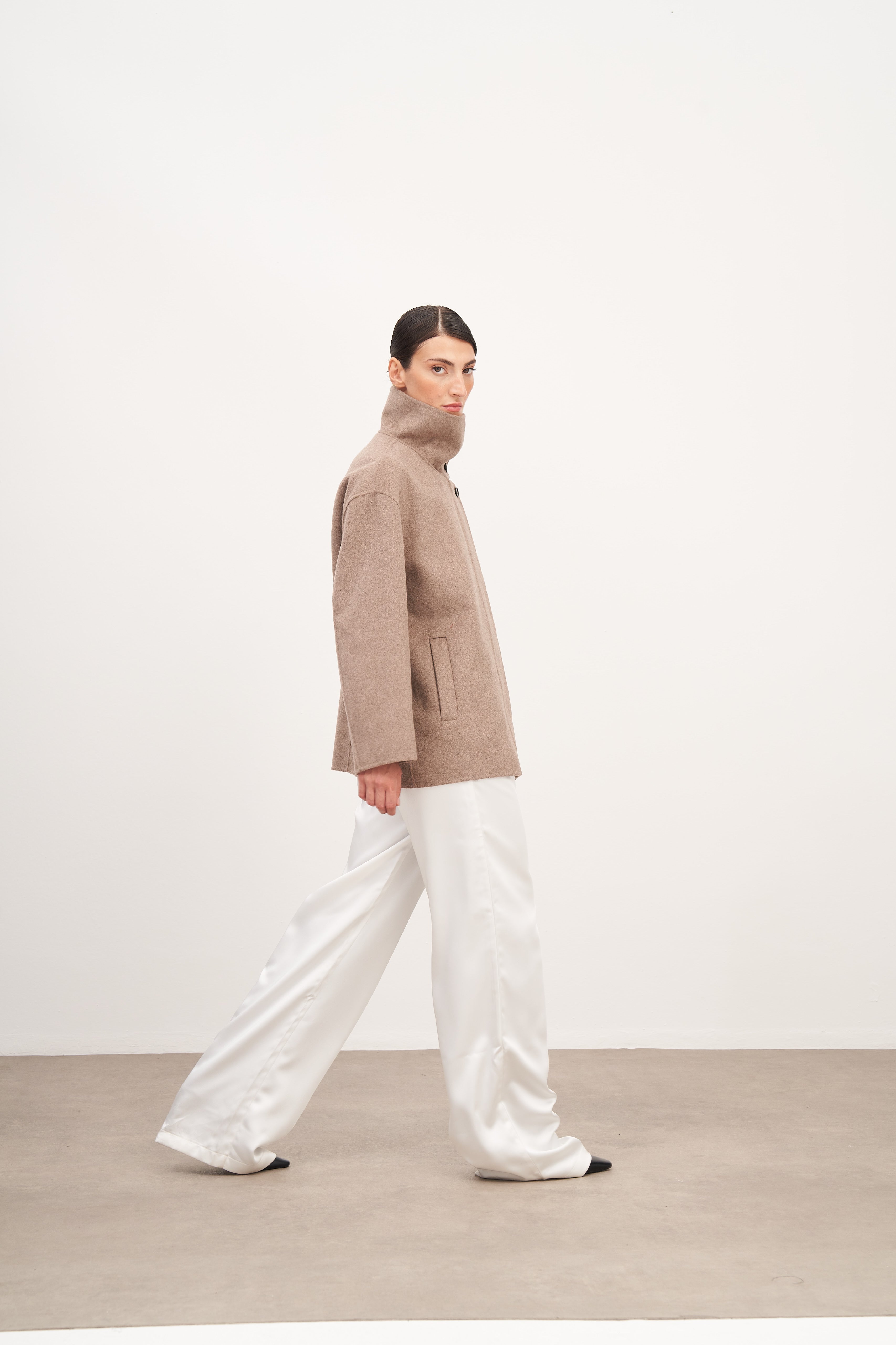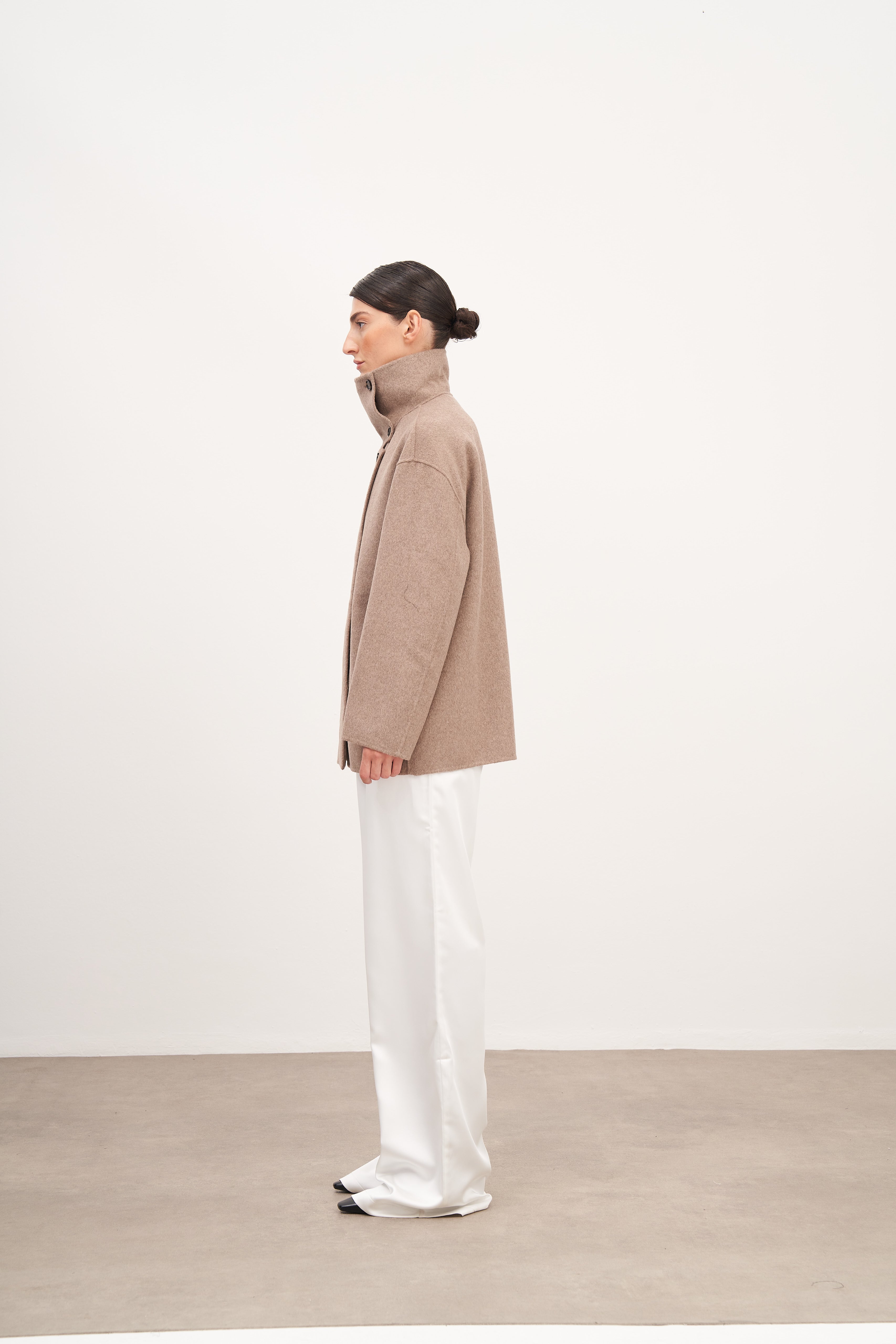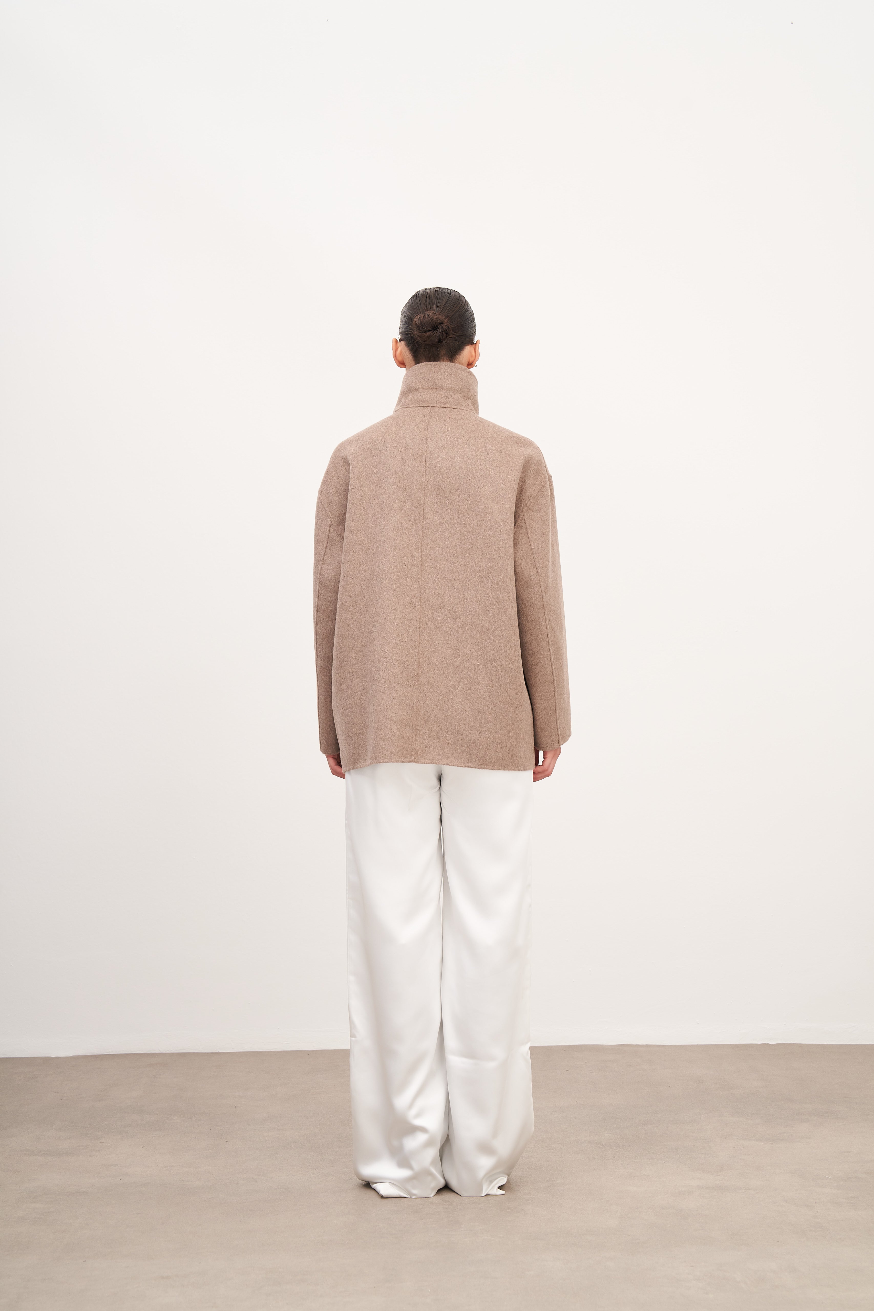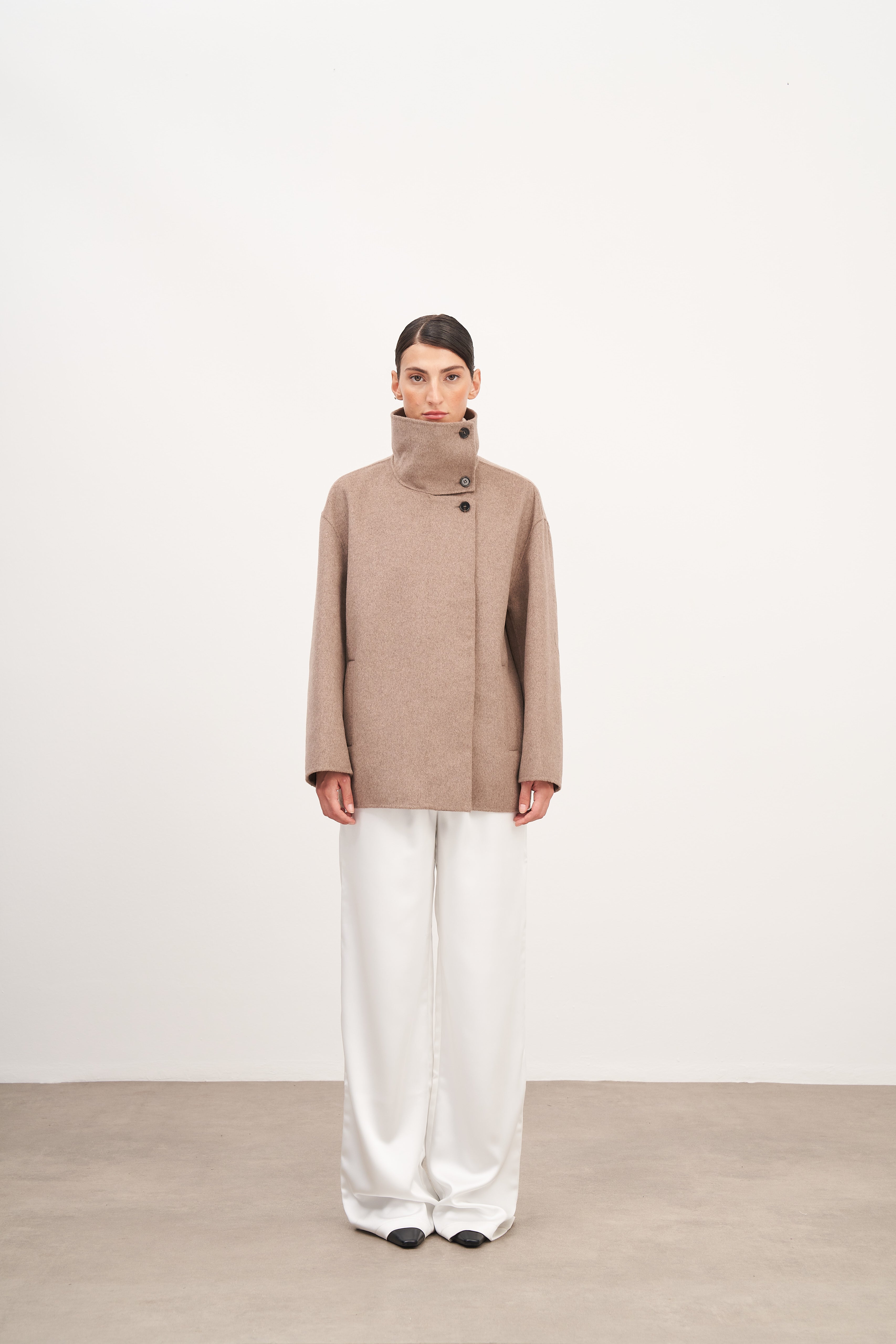 WINGCOTT Bej Yüksek Yaka Kaşe Kaban