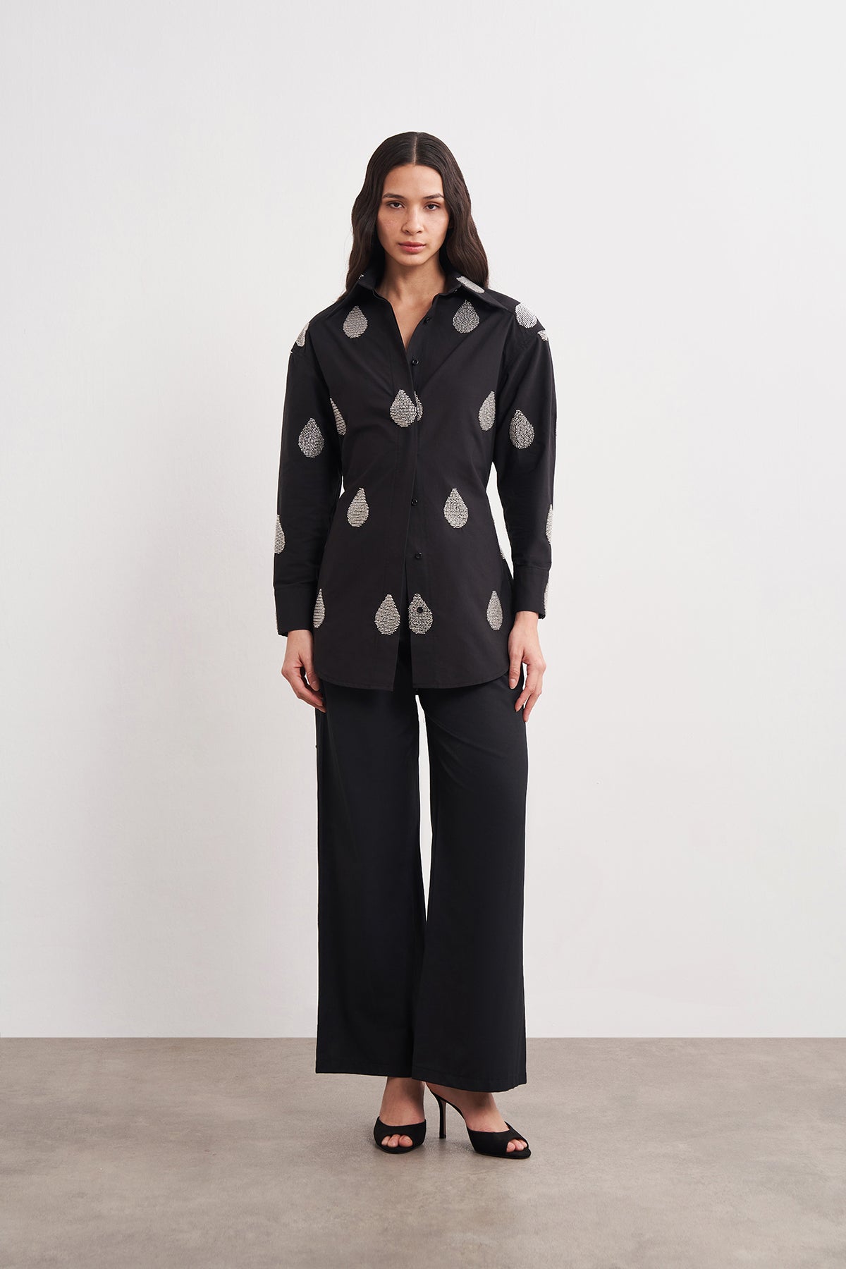 WINGCOTT Boncuk İşlemeli Bağlamalı Vatkalı Gömlek
