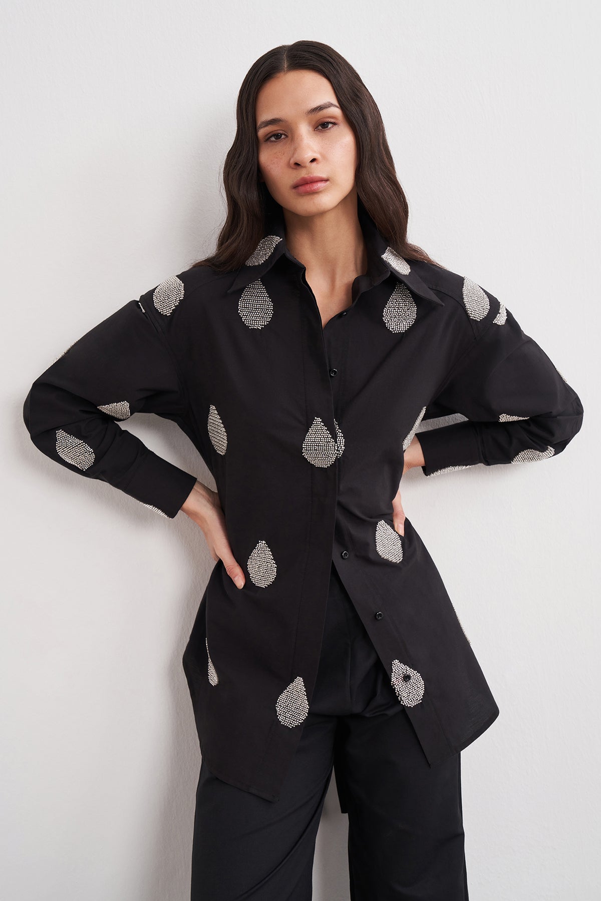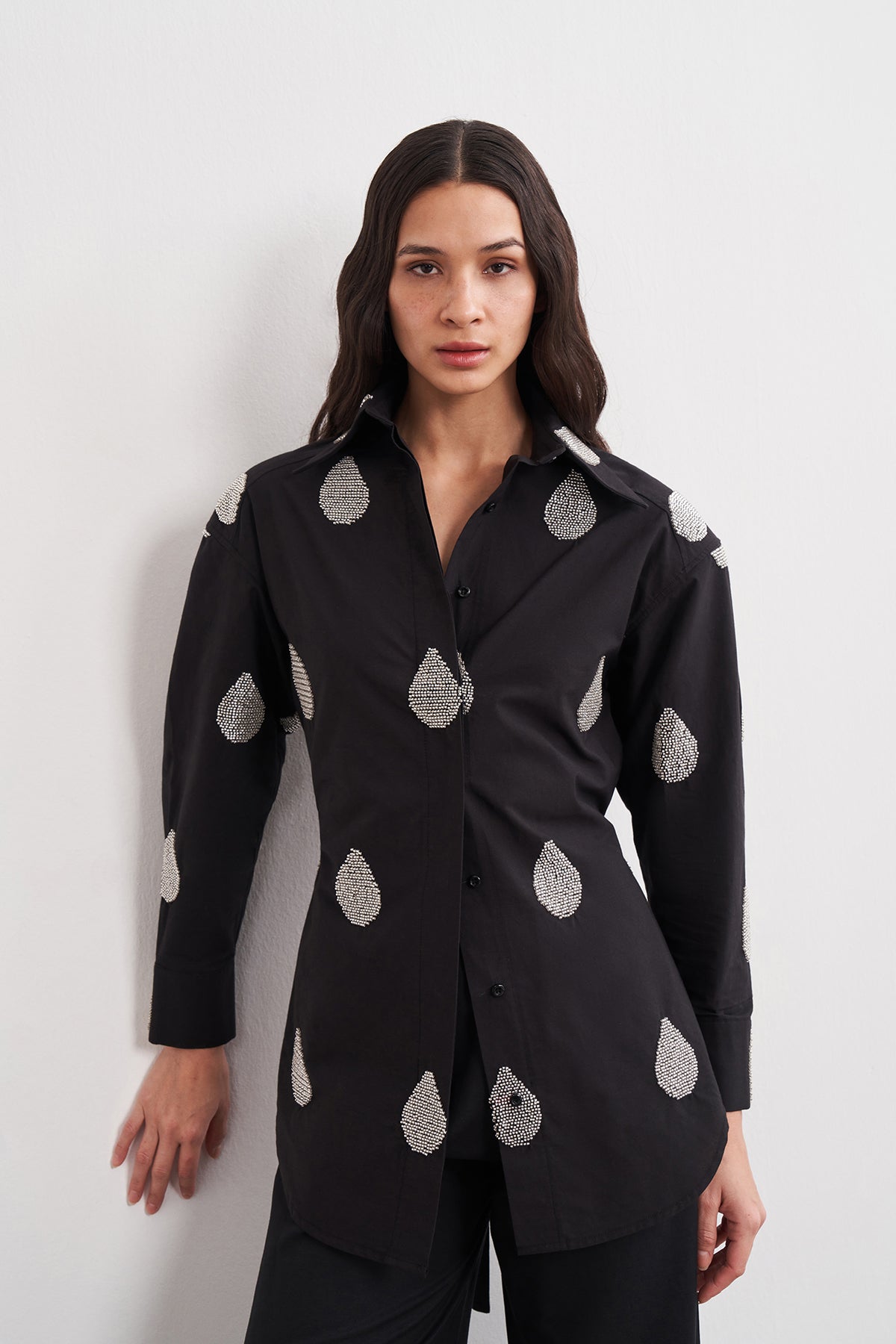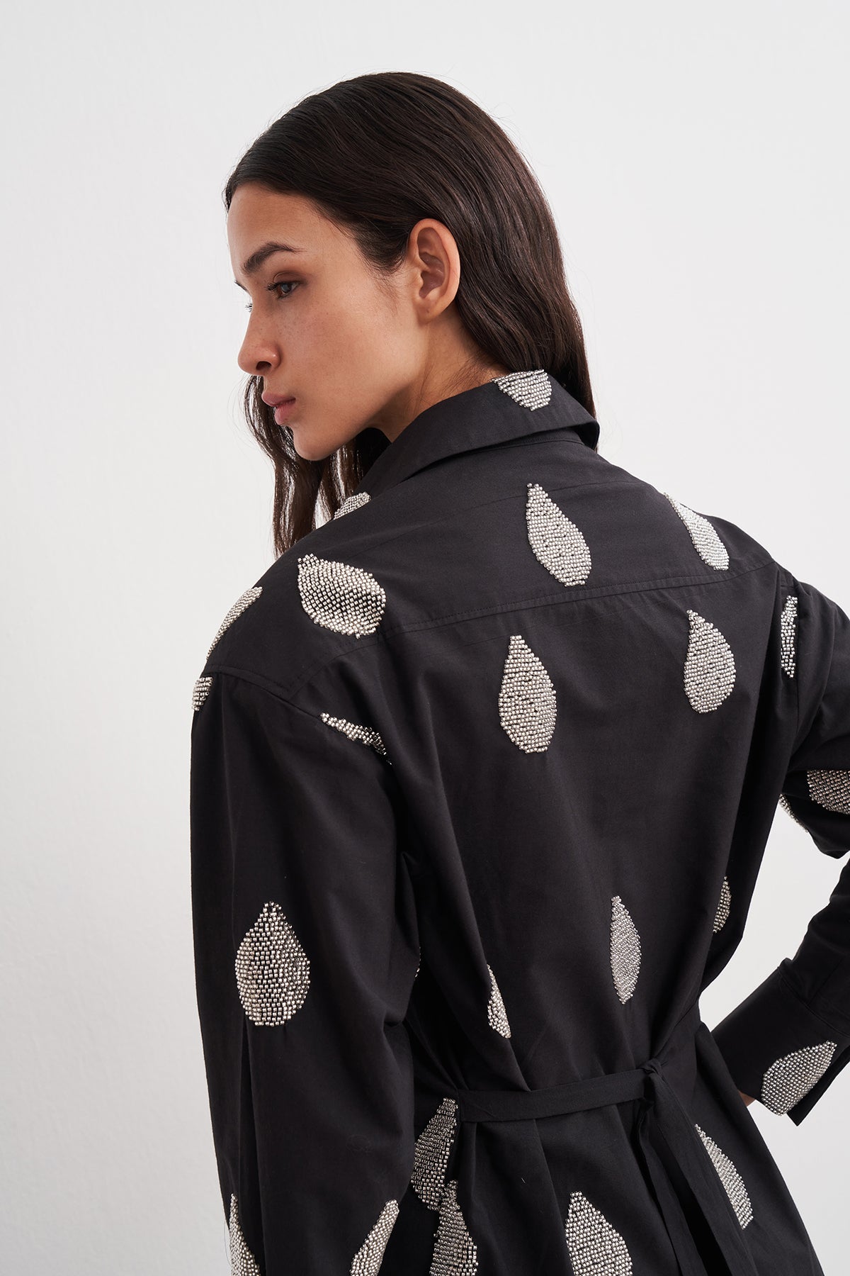 Boncuk İşlemeli Bağlamalı Vatkalı Gömlek