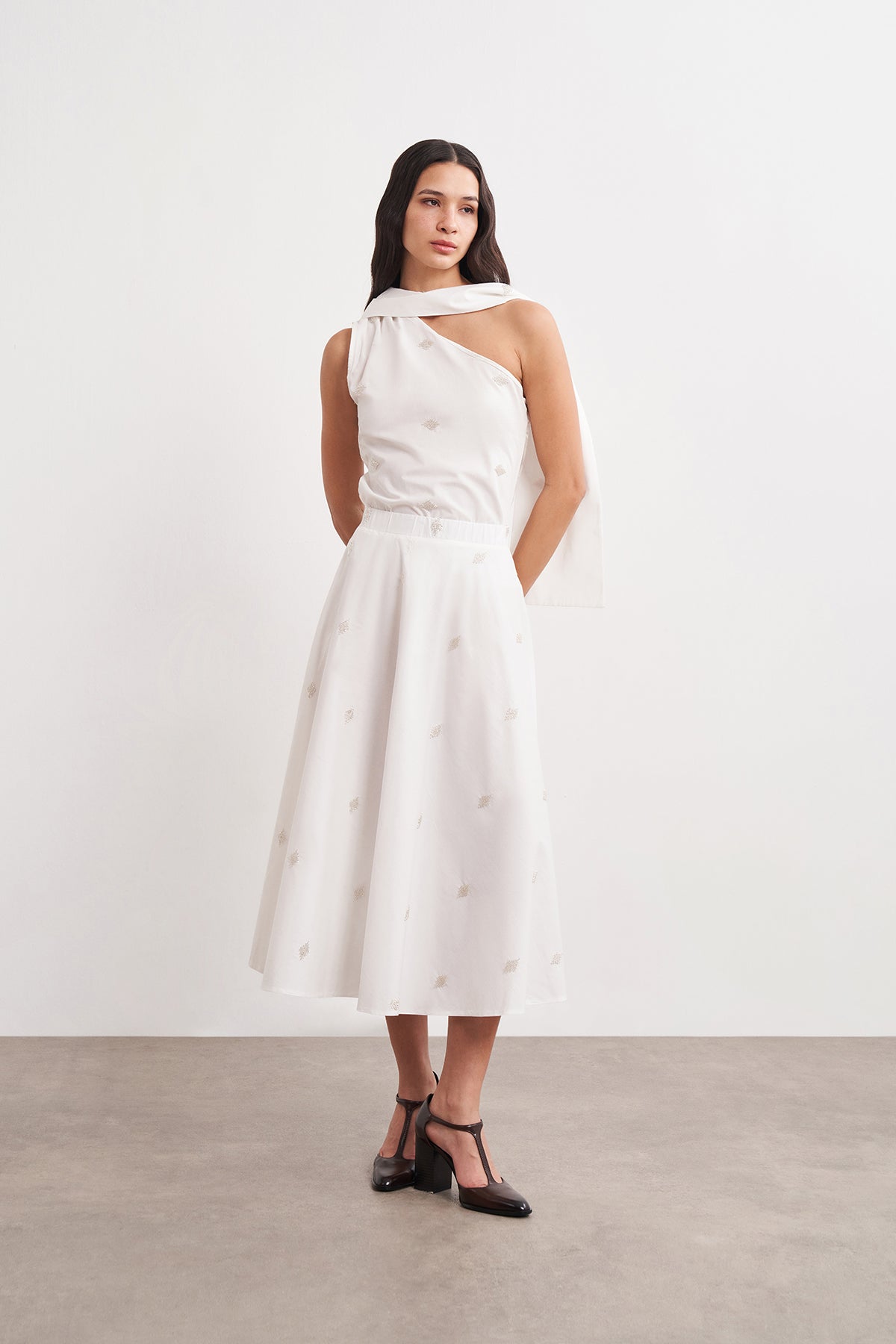 WINGCOTT Boncuk İşlemeli Tek Omuz Boyun Detaylı Bluz