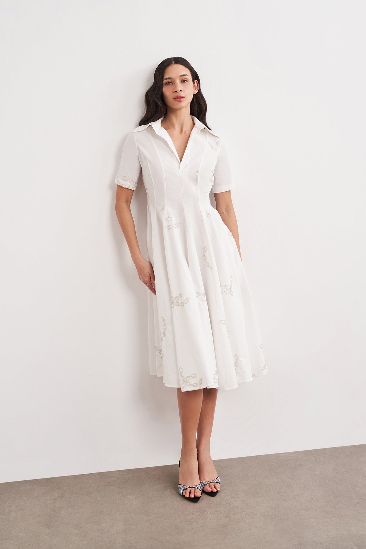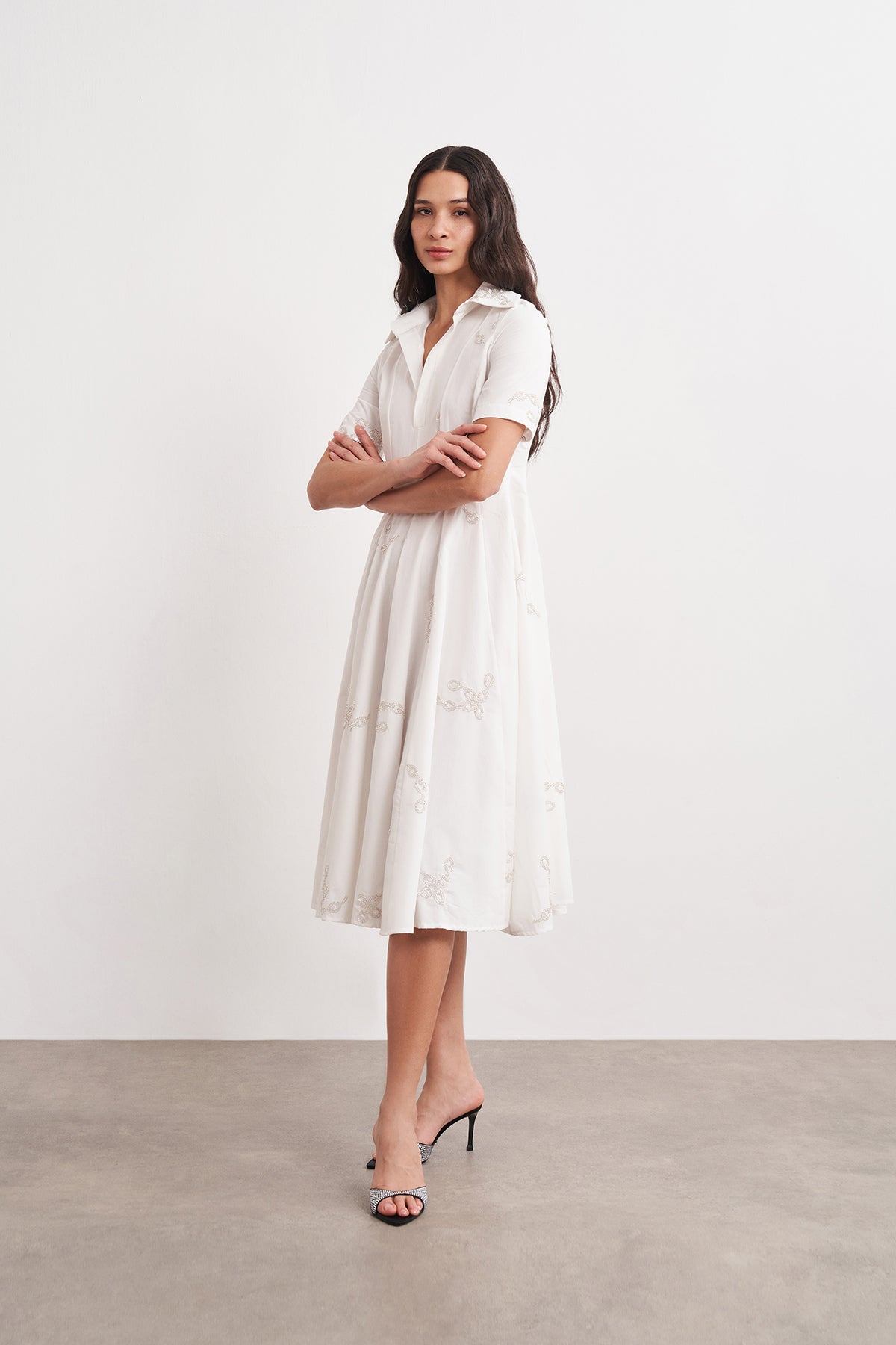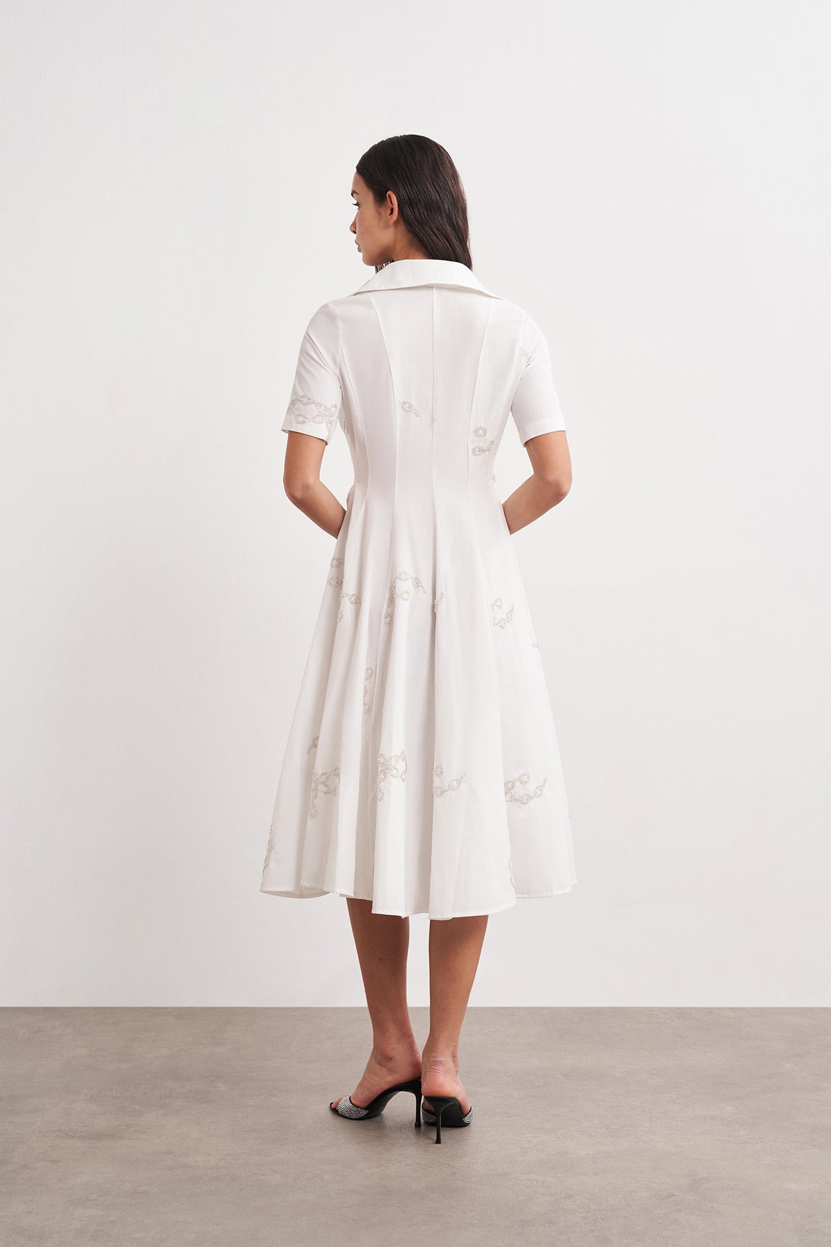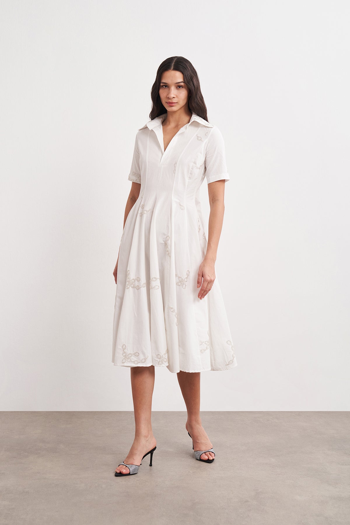 WINGCOTT Boncuk İşlemeli Volanlı Midi Elbise