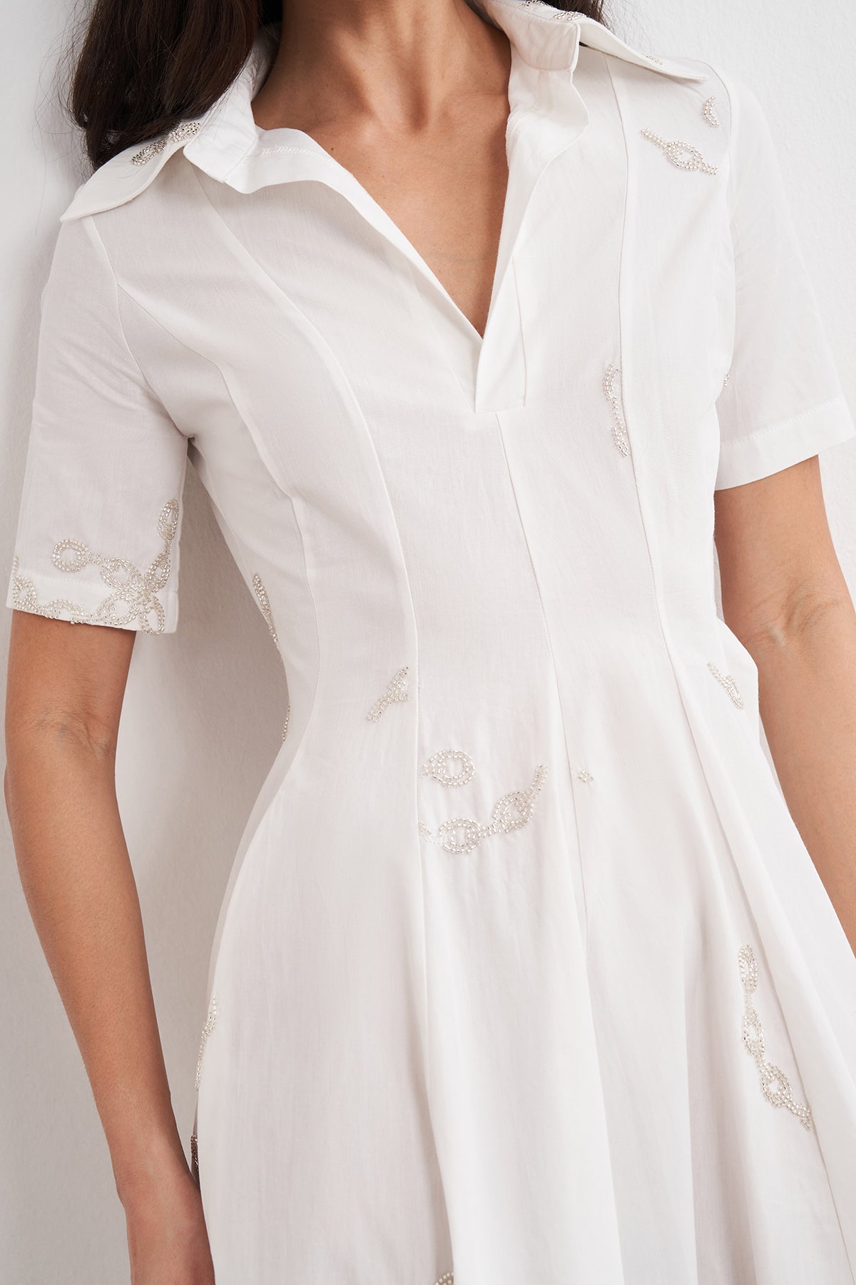 Boncuk İşlemeli Volanlı Midi Elbise