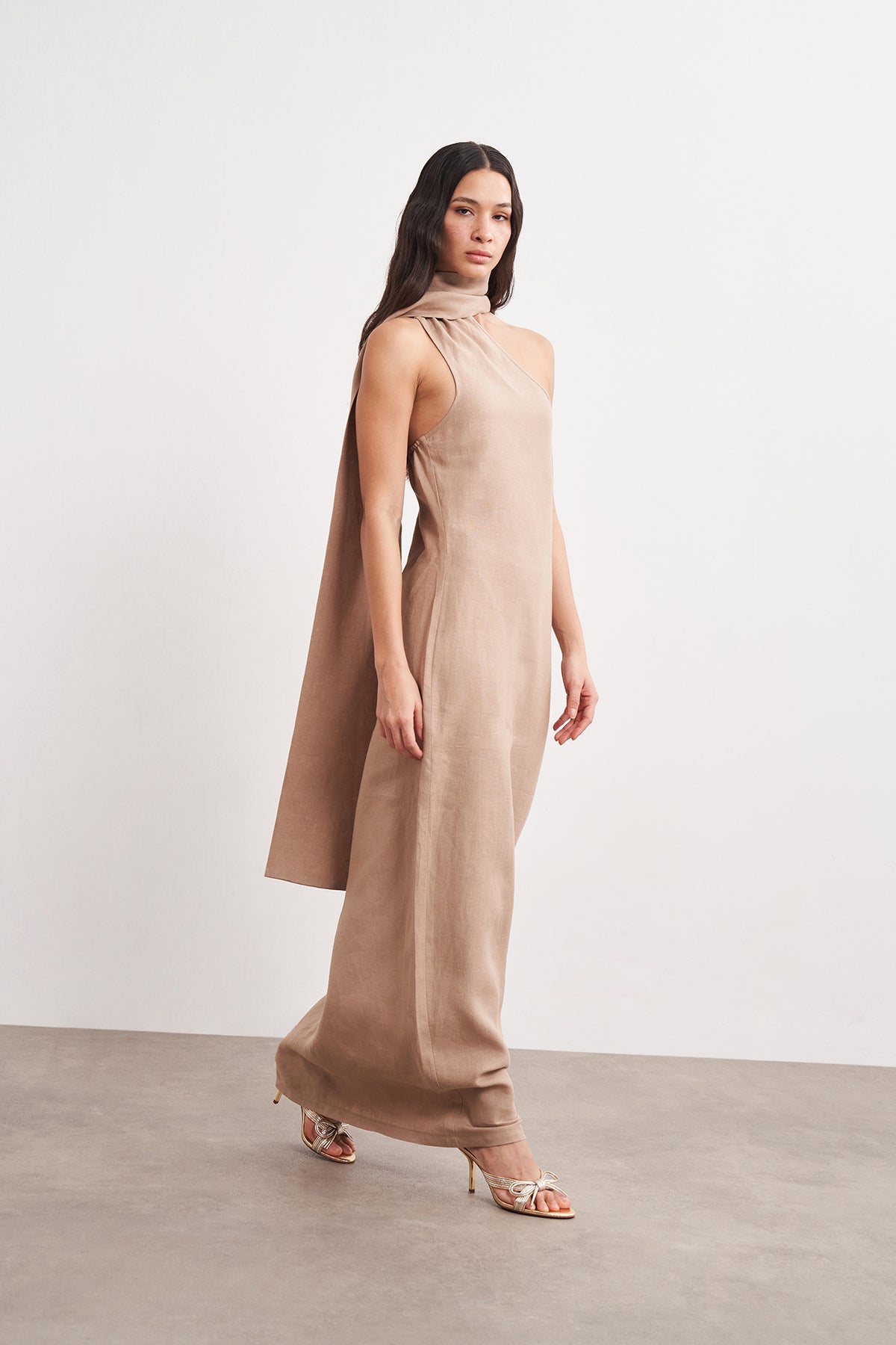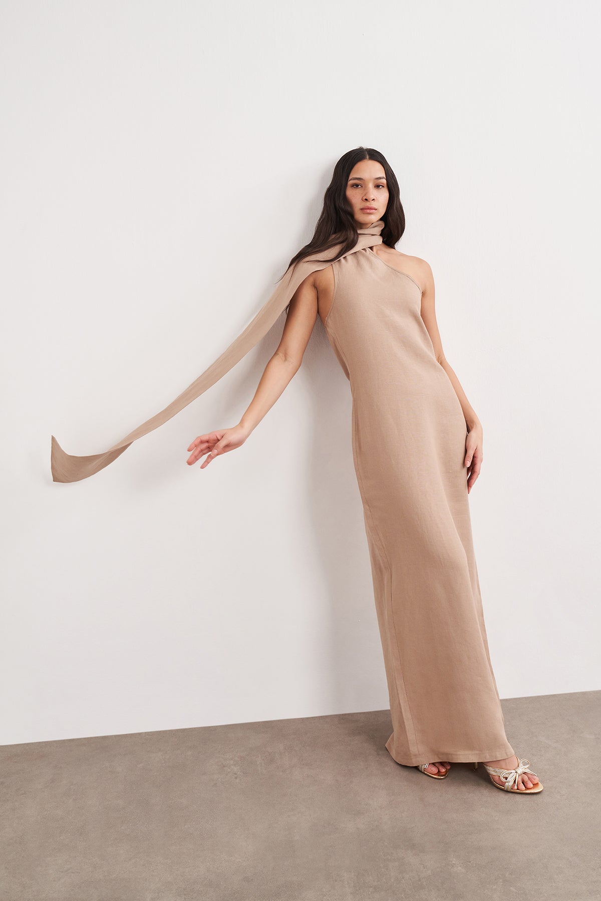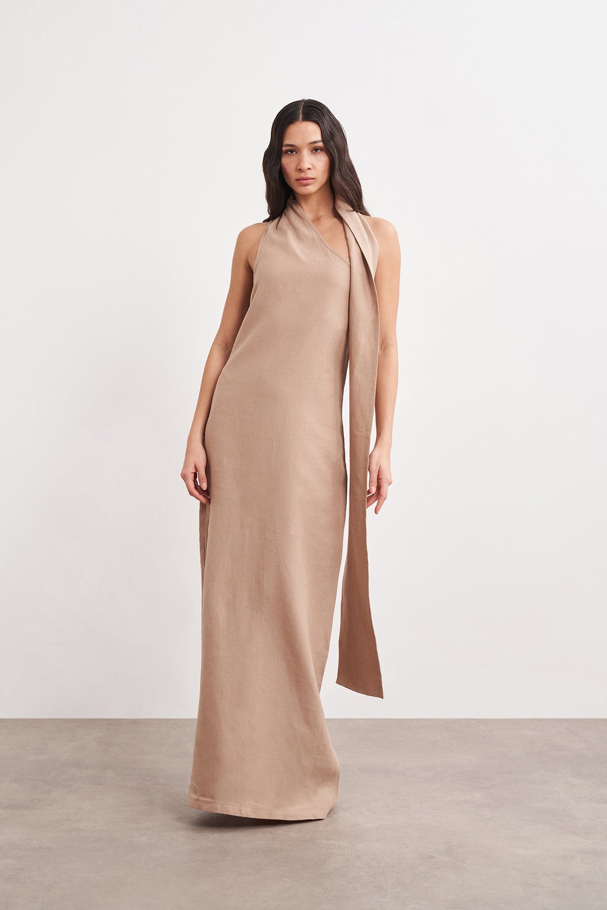 WINGCOTT Boyun Bağlama Detaylı Maxi Keten Elbise