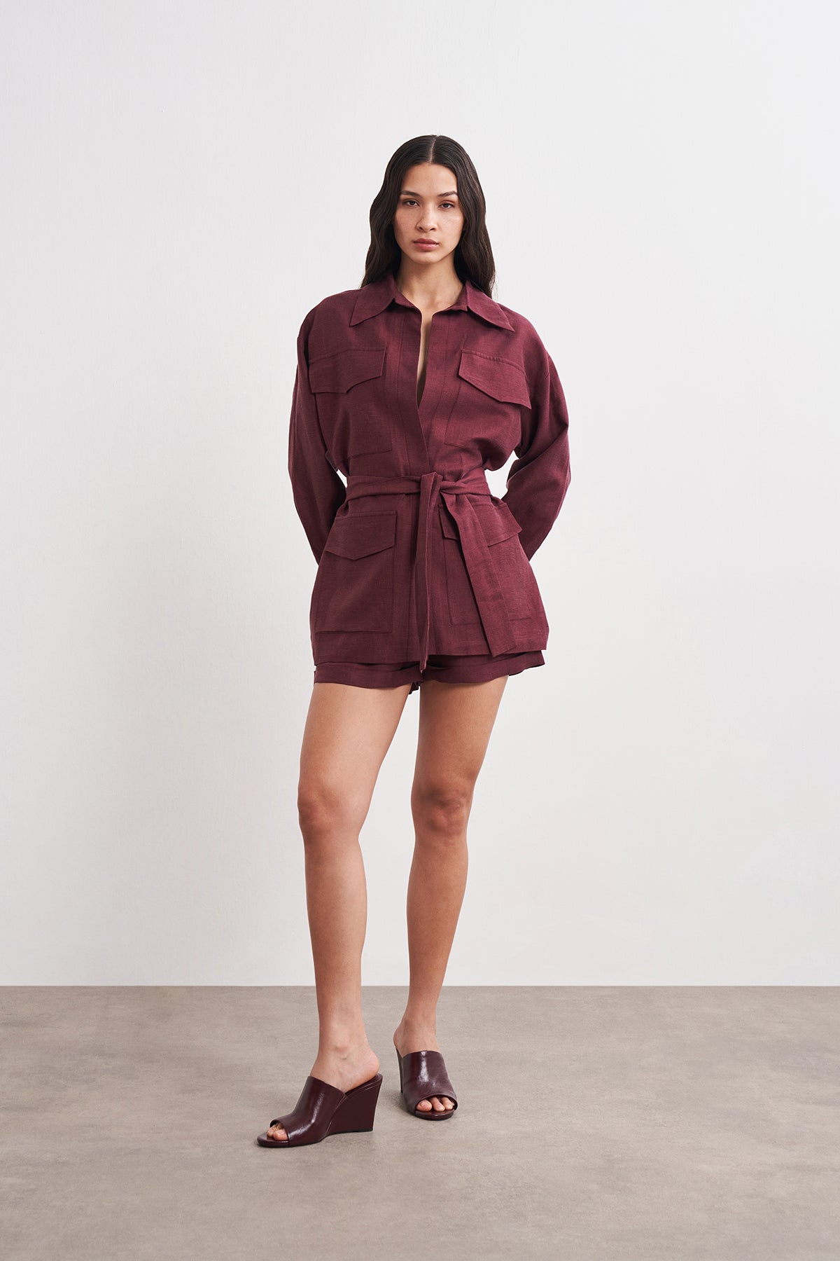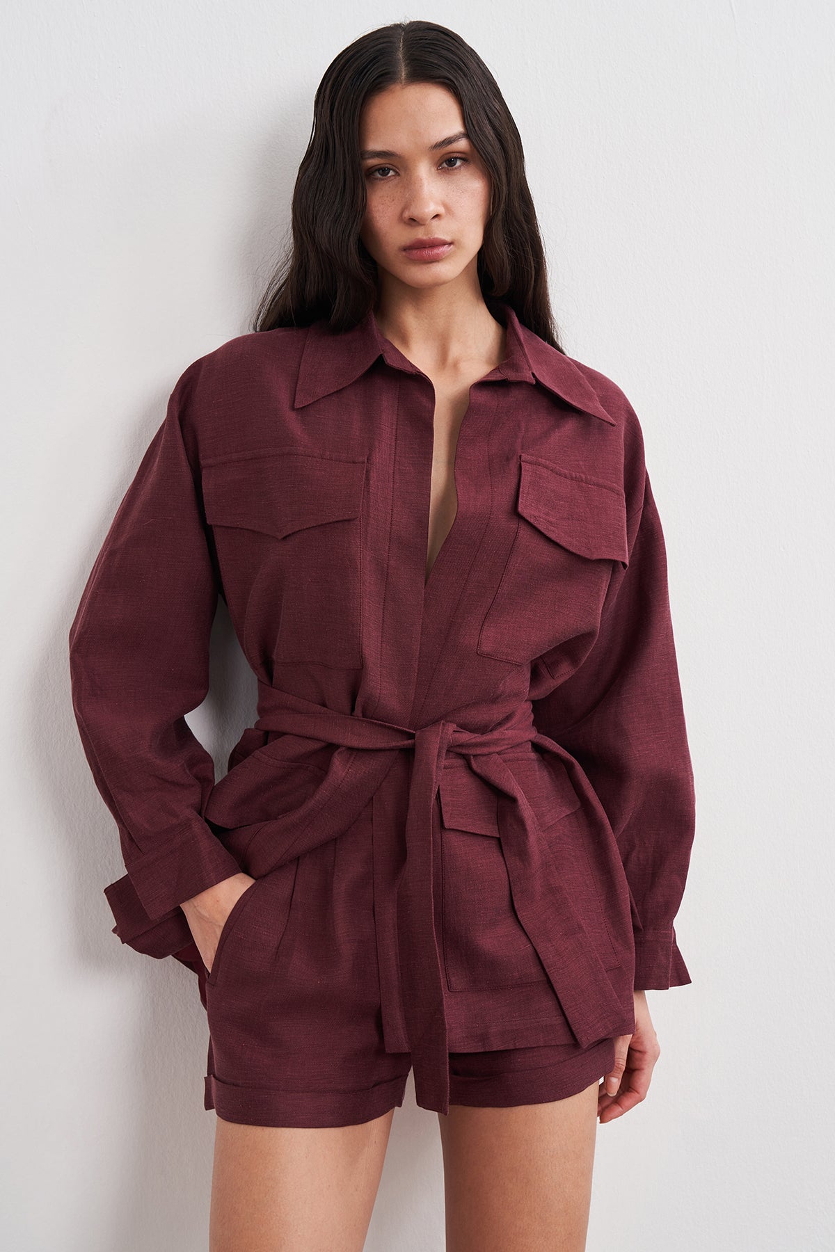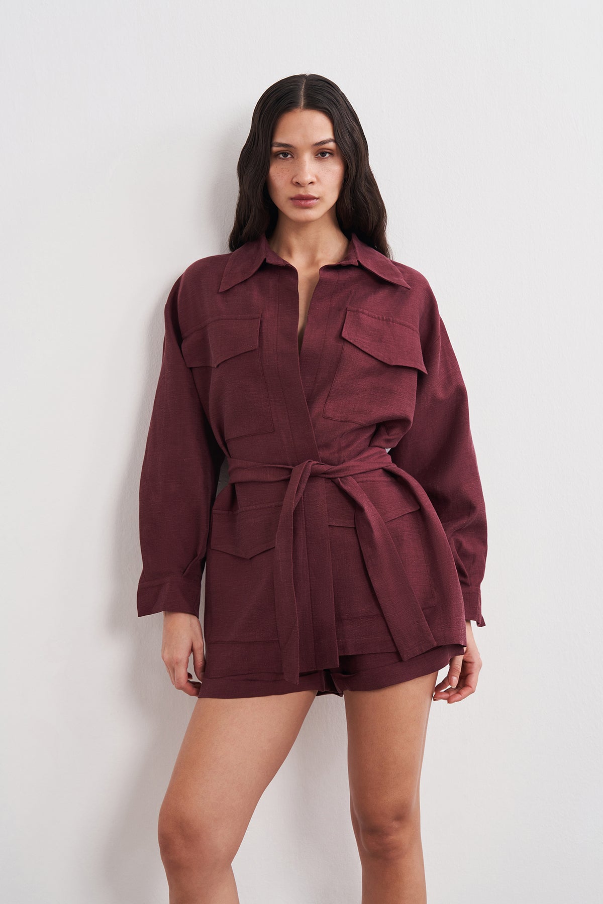 WINGCOTT Cep Detaylı Kuşaklı Keten Gömlek Ceket