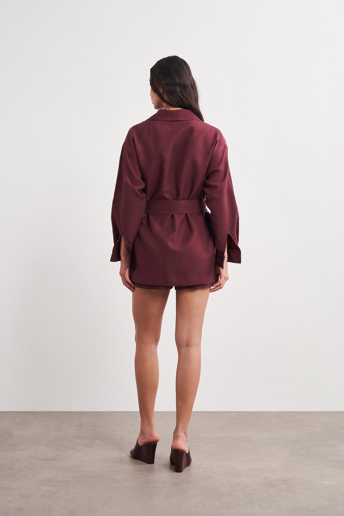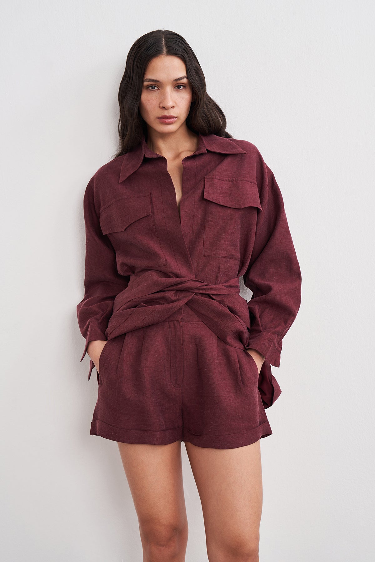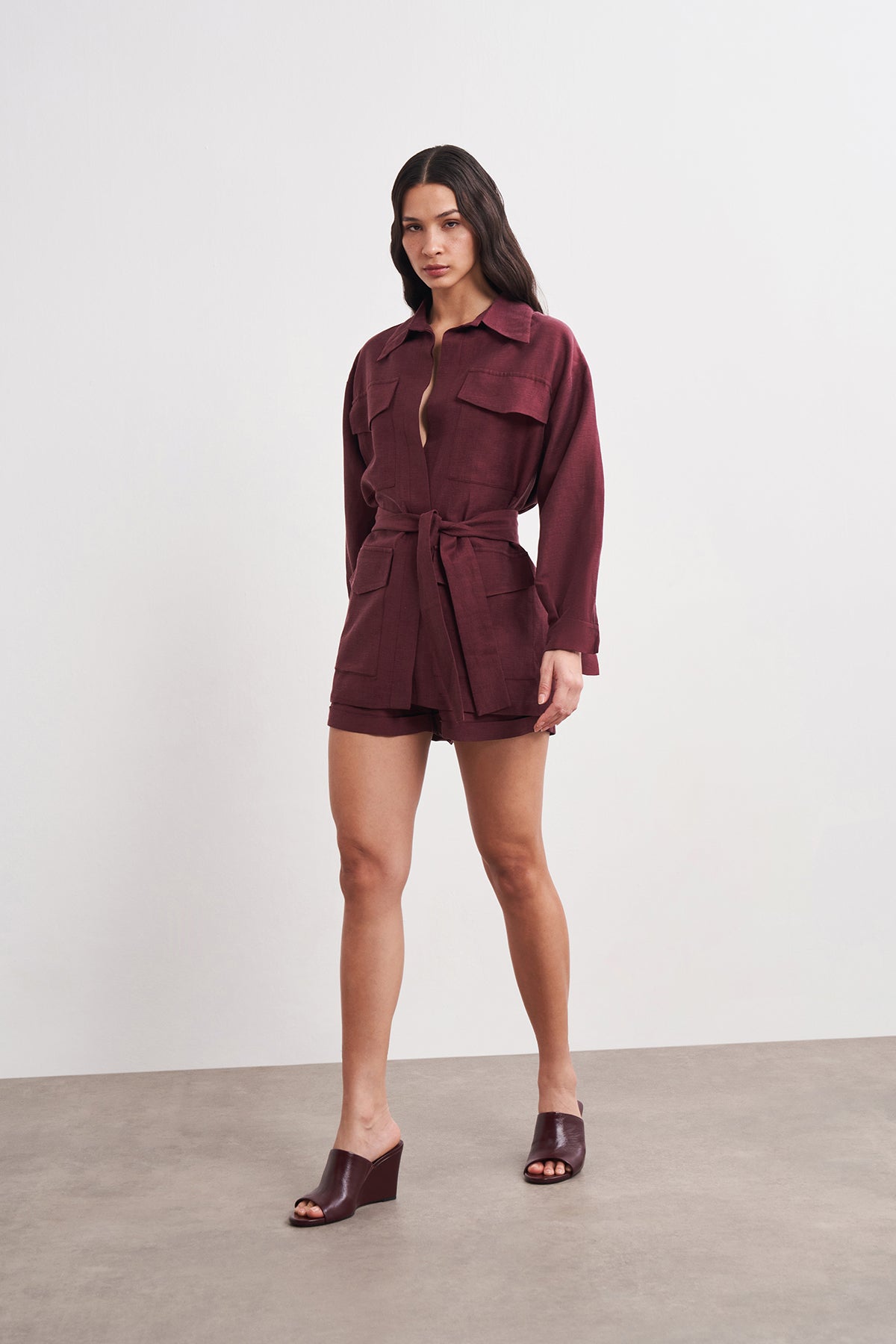 WINGCOTT Cep Detaylı Kuşaklı Keten Gömlek Ceket