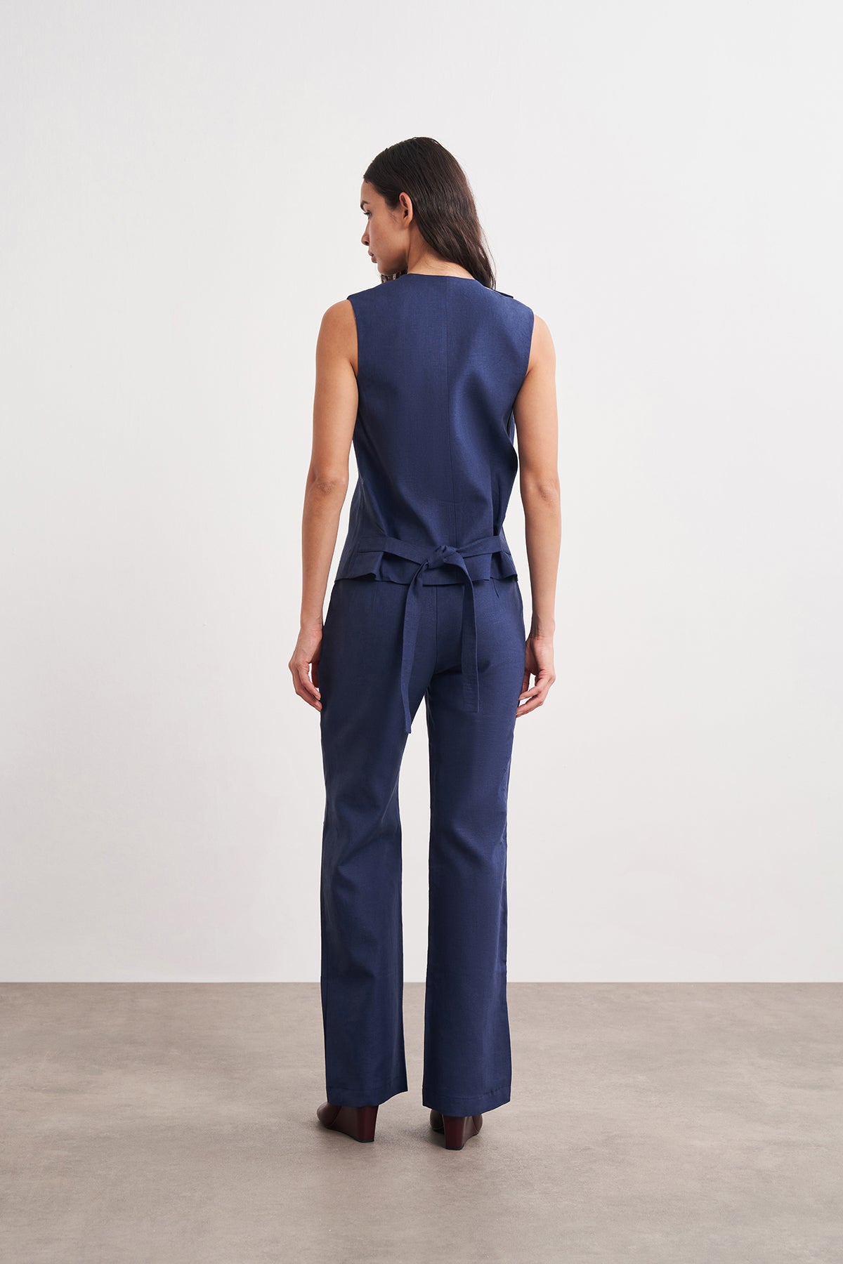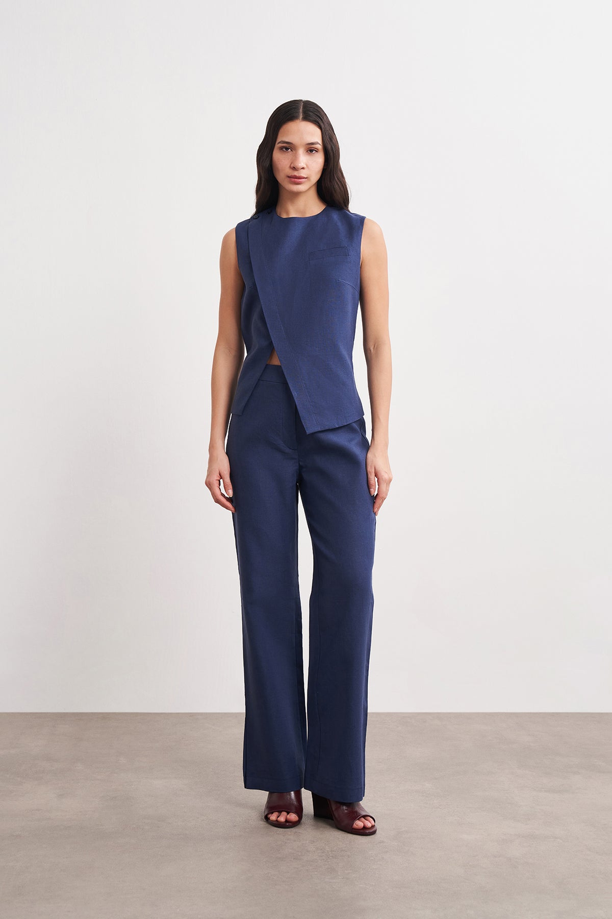 Çift Kapama Detaylı Keten Yelek