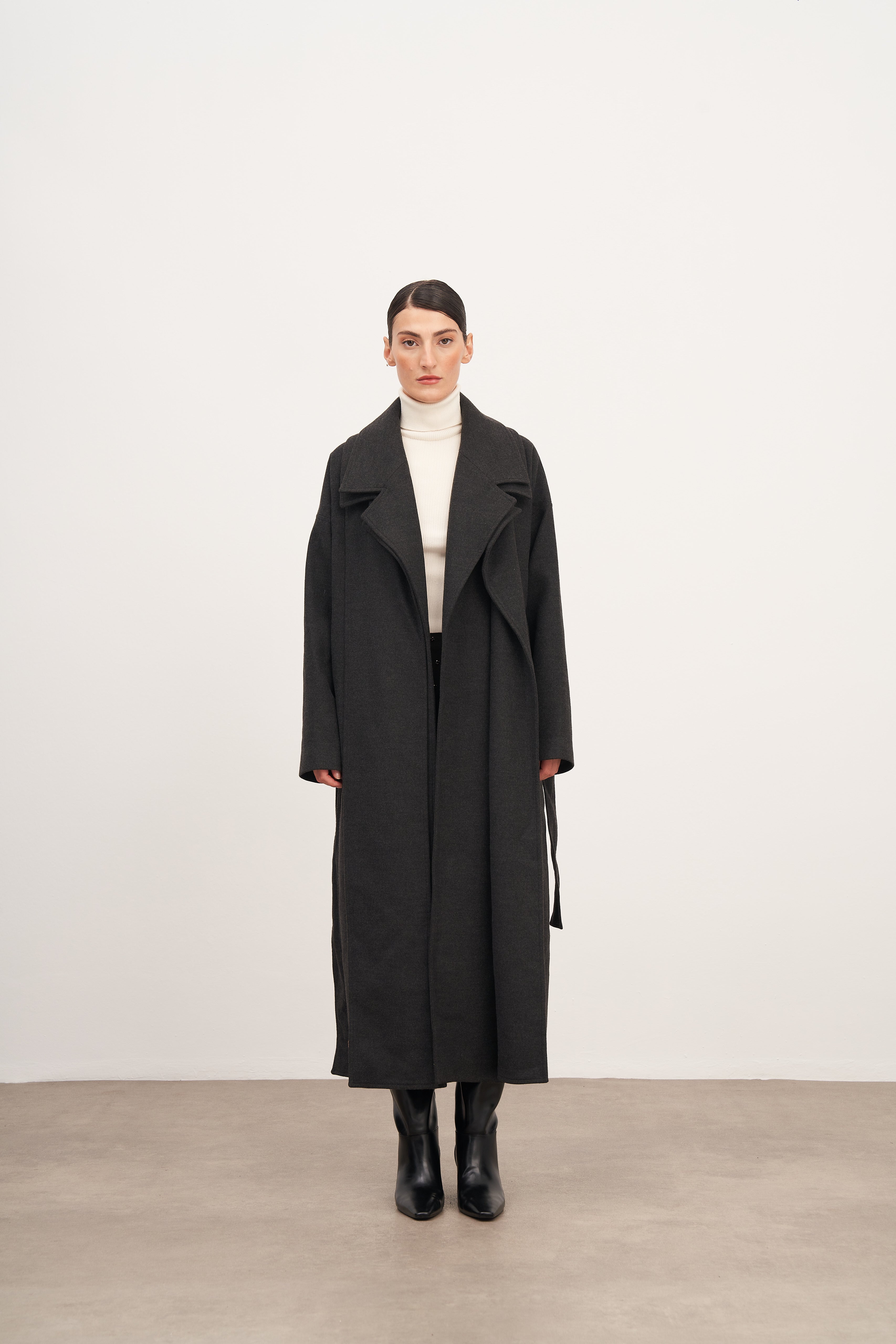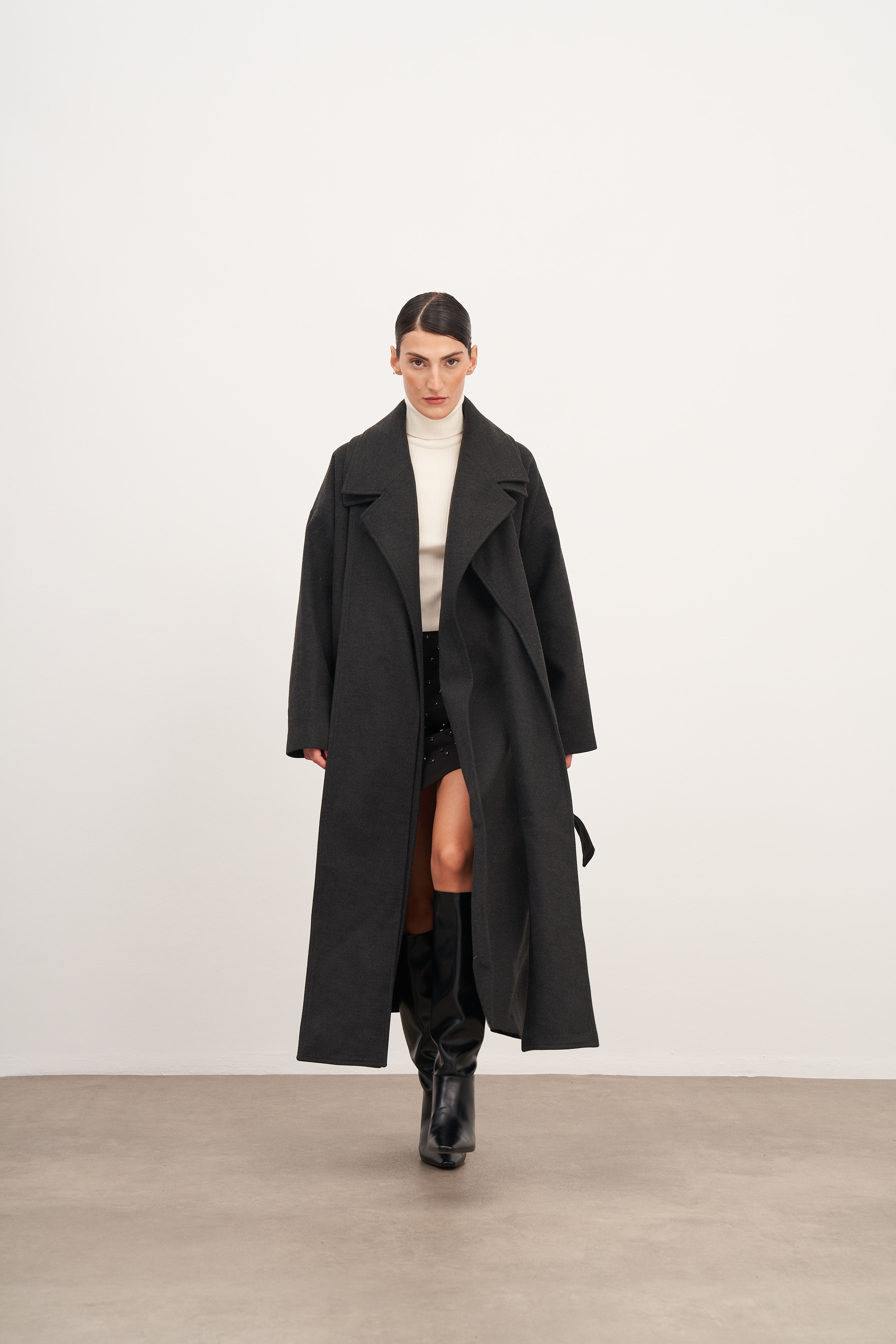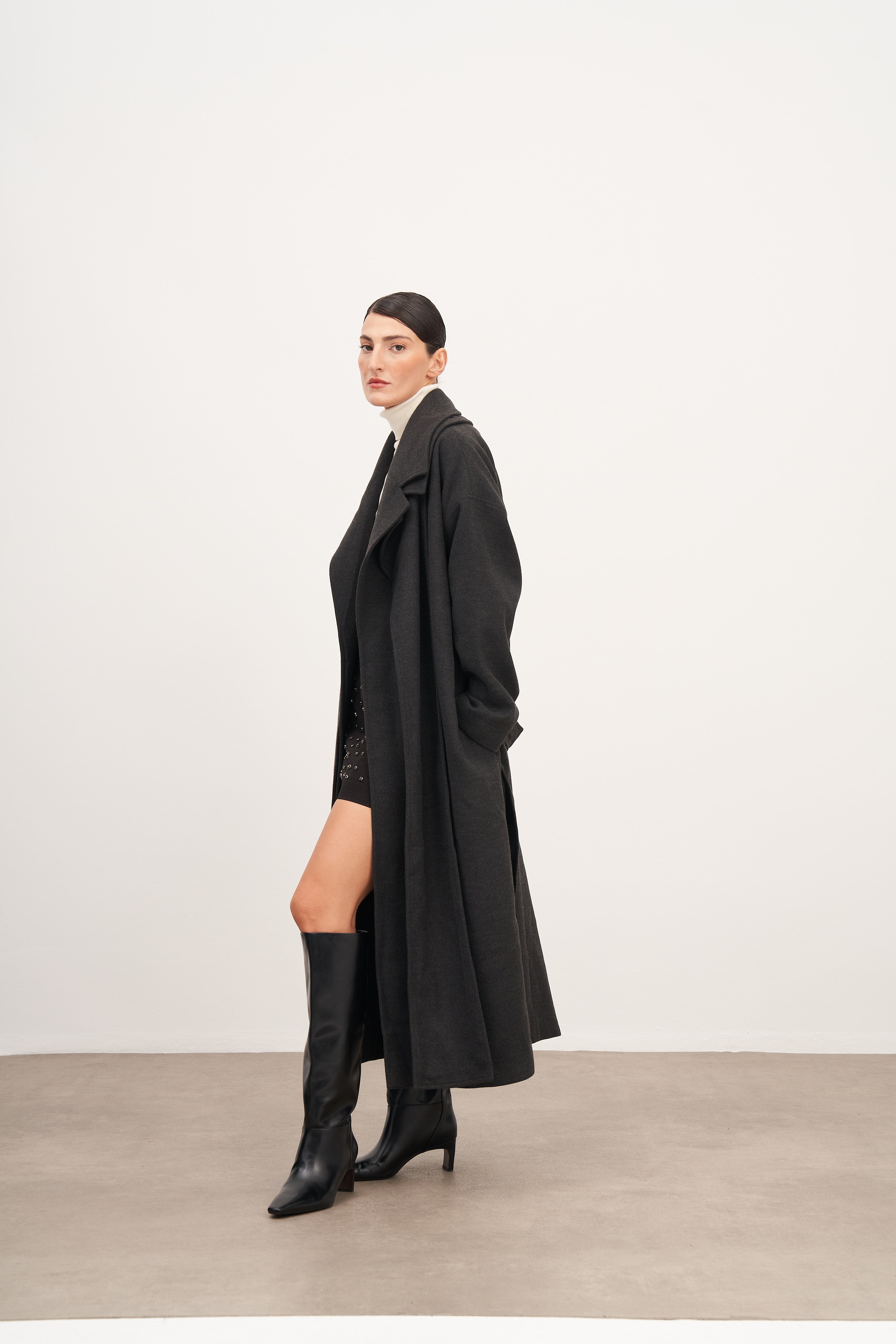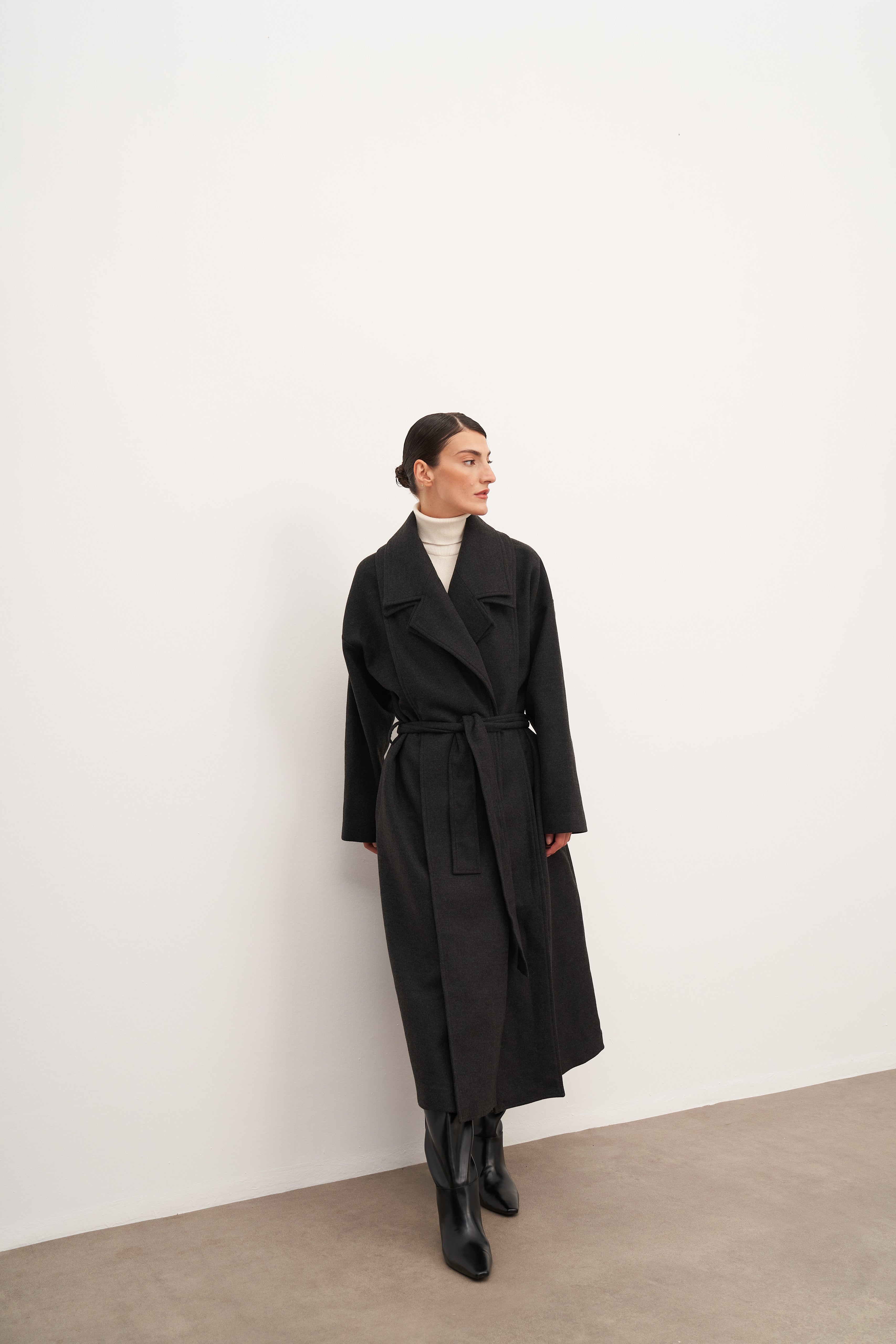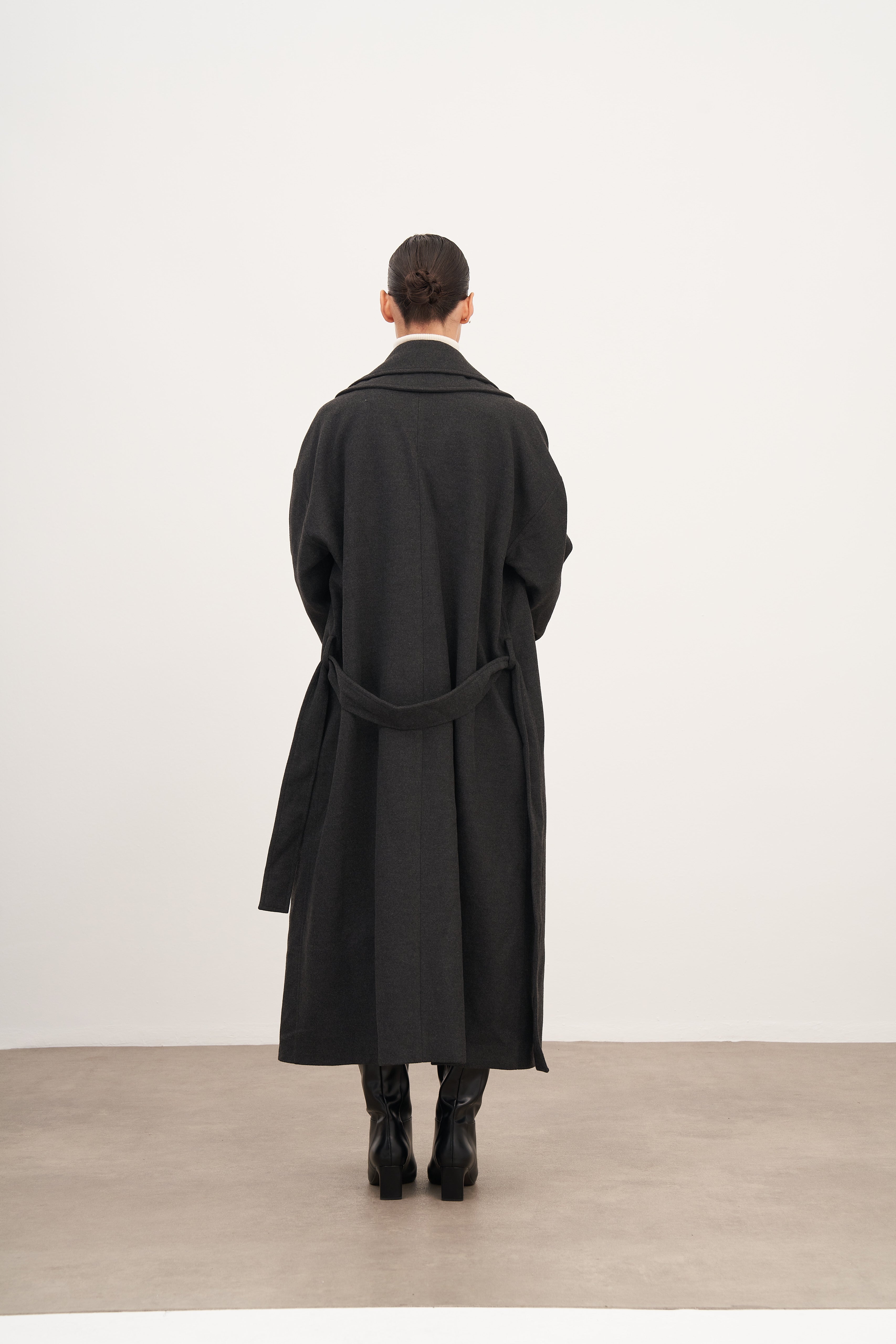 Çift Yakalı Yün Karışımlı Kaşe Kaban