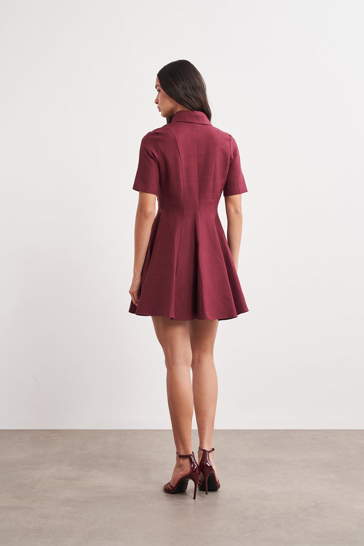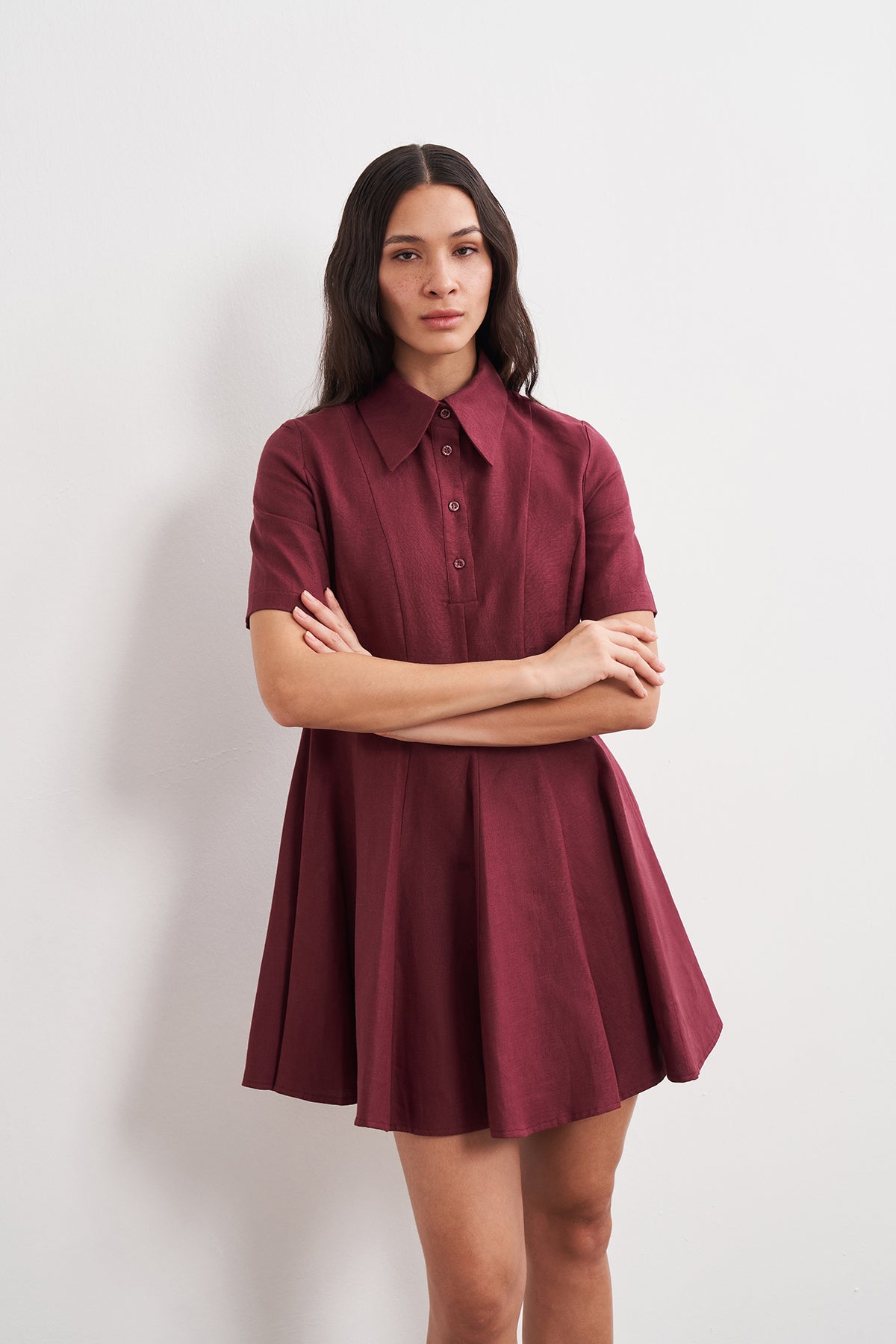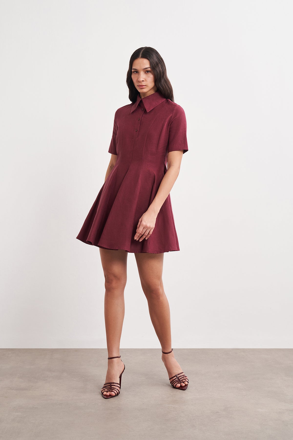Gömlek Yaka Yarım Kollu Volanlı Mini Elbise