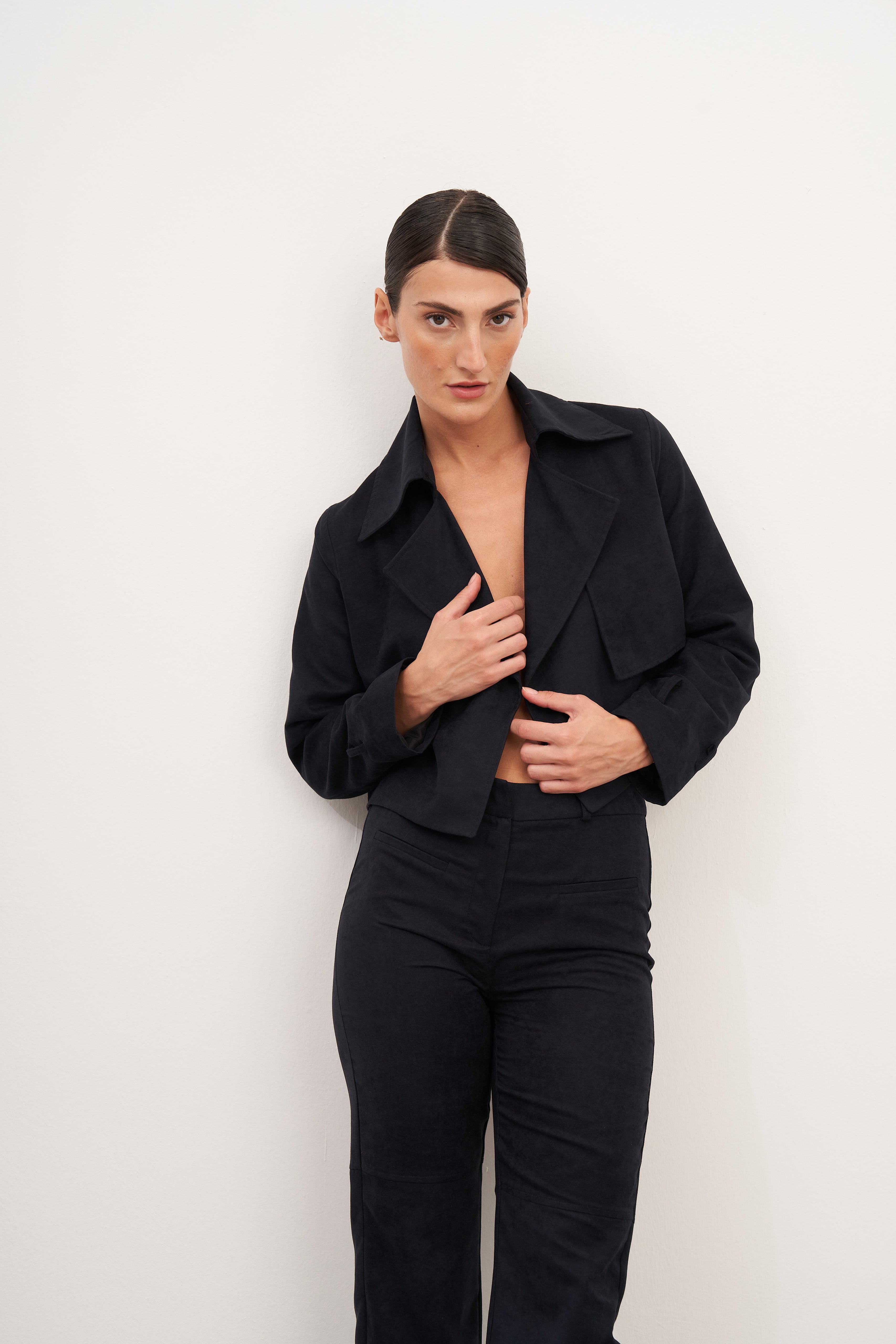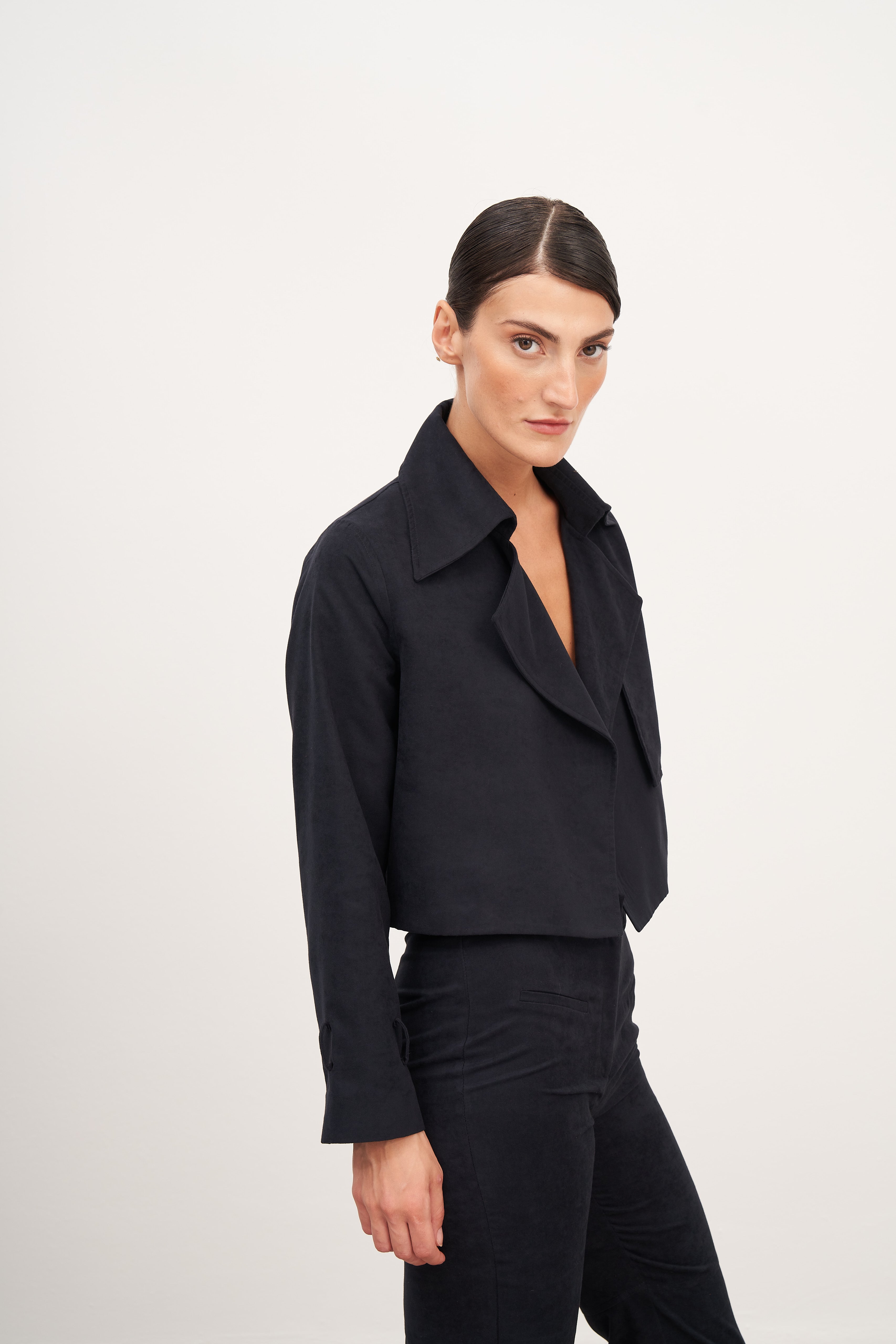 WINGCOTT Lacivert Süet Kemerli Kısa Ceket