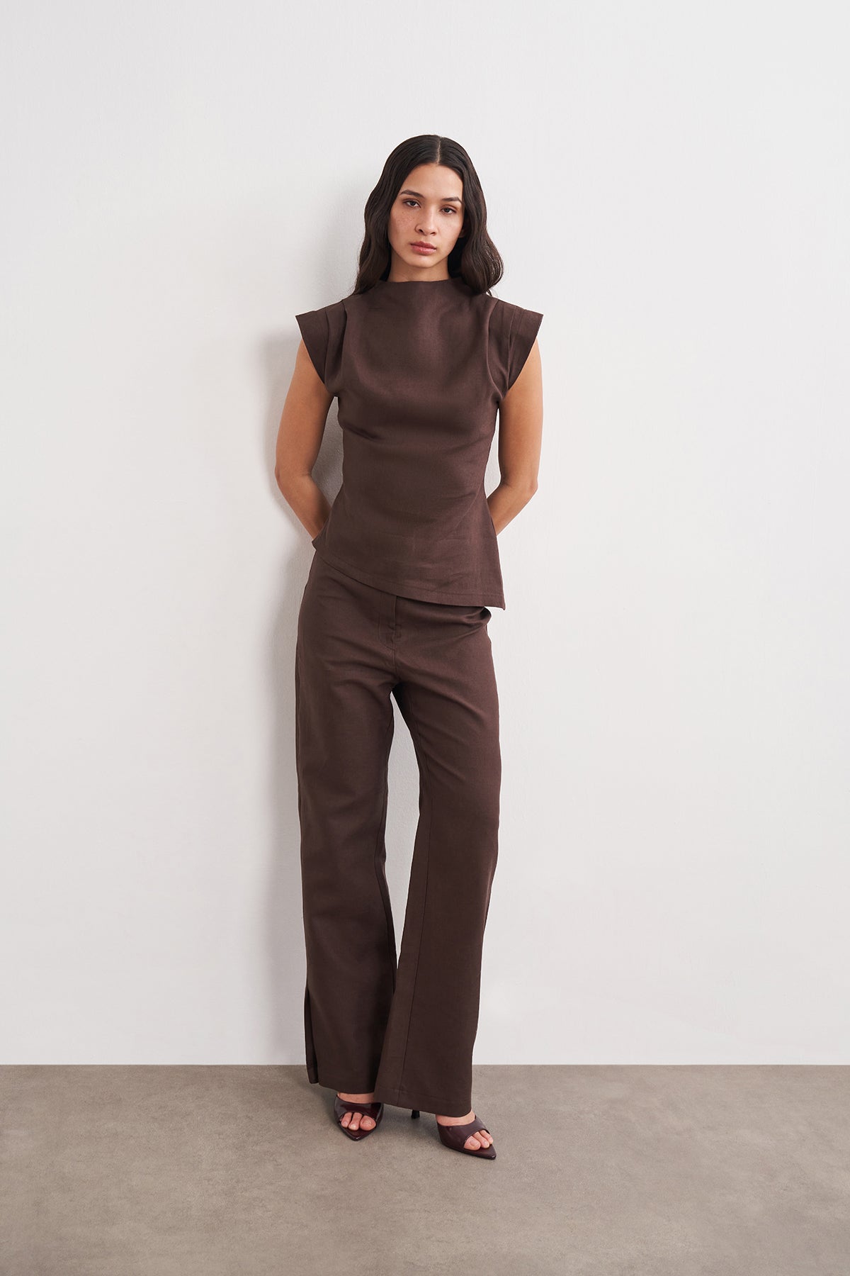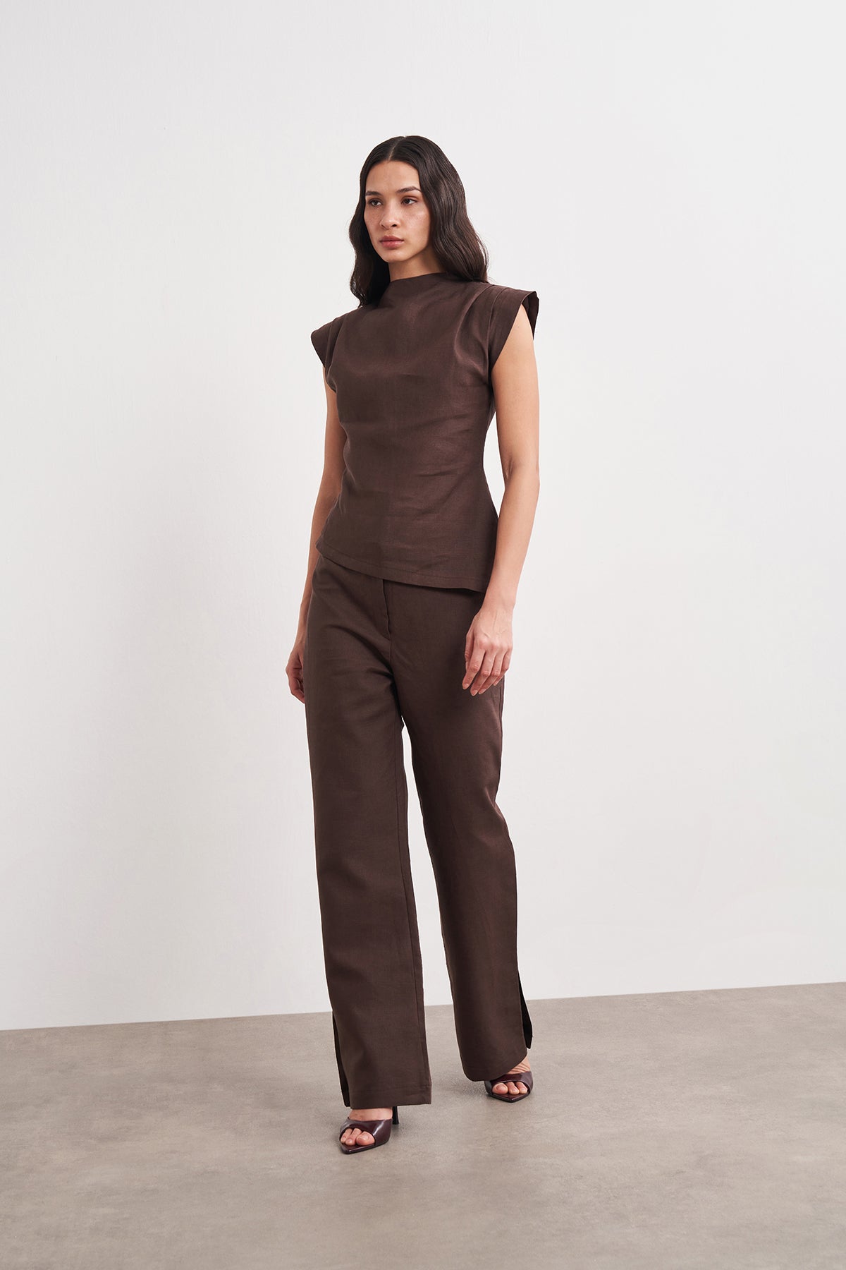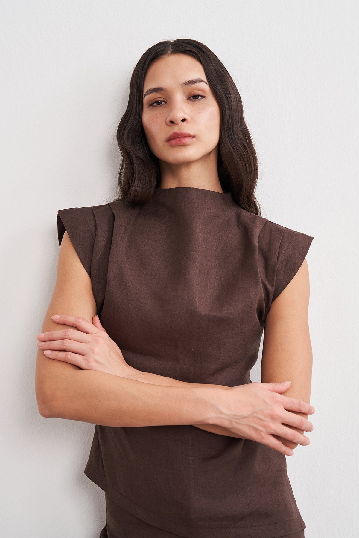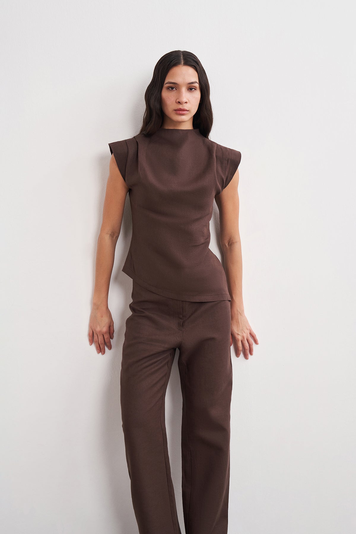 Omuz Drape Detaylı Asimetrik Form Keten Bluz
