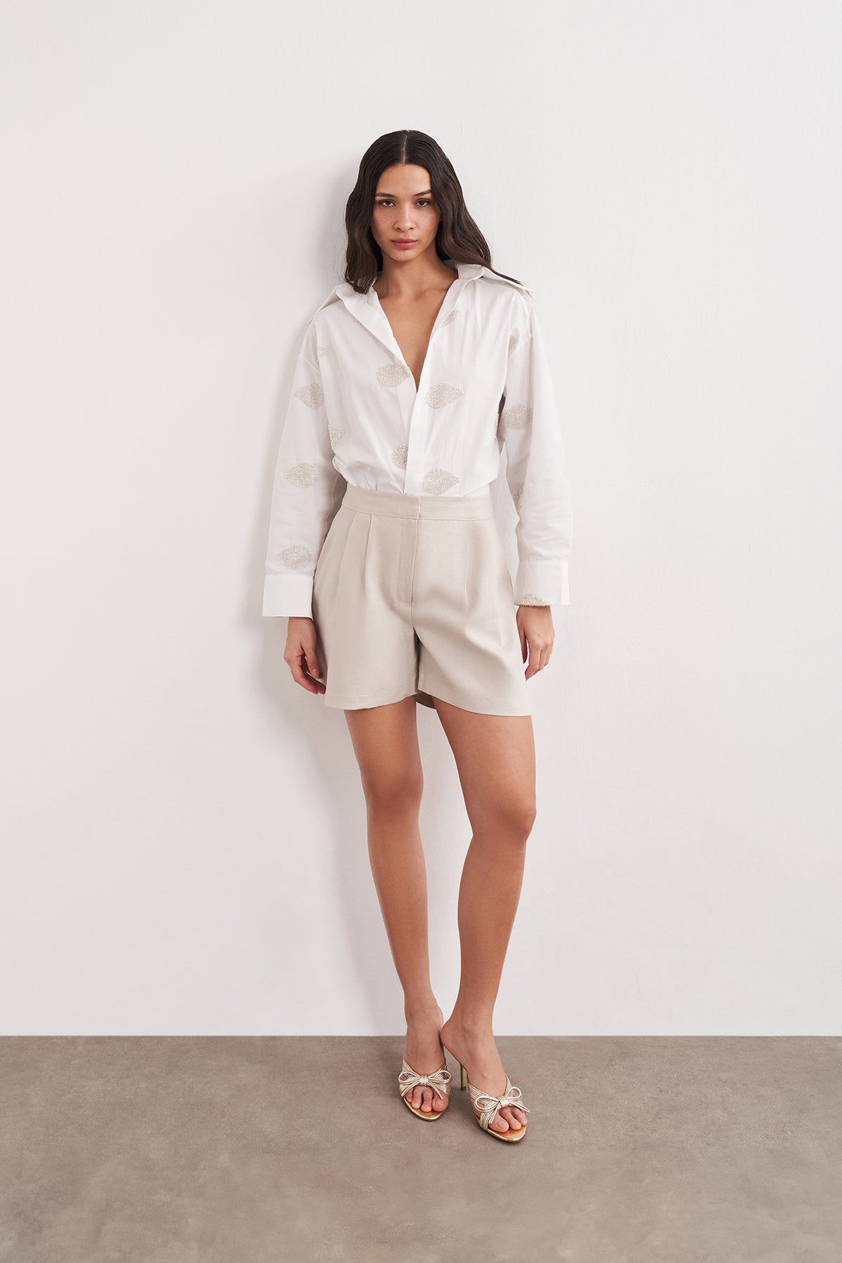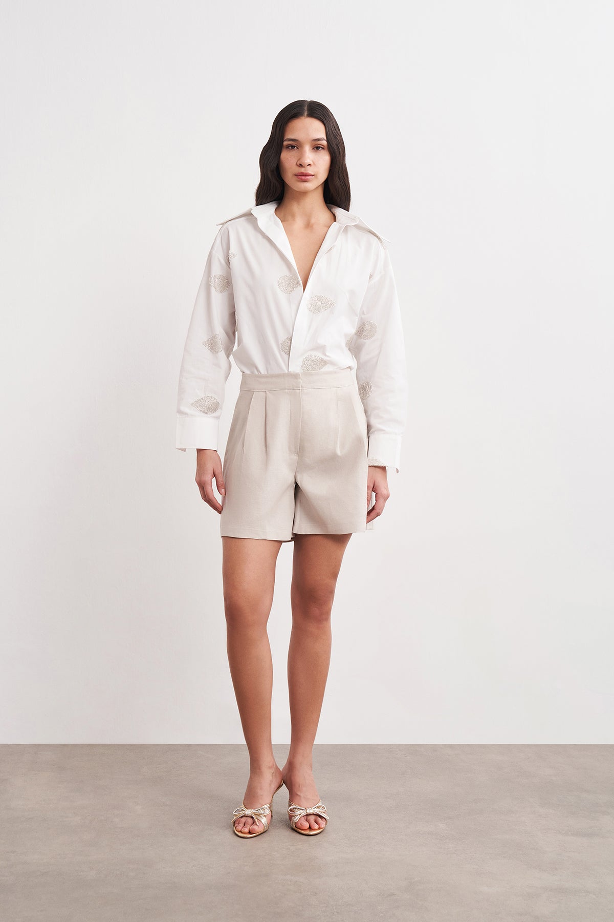 Pileli Keten Şort