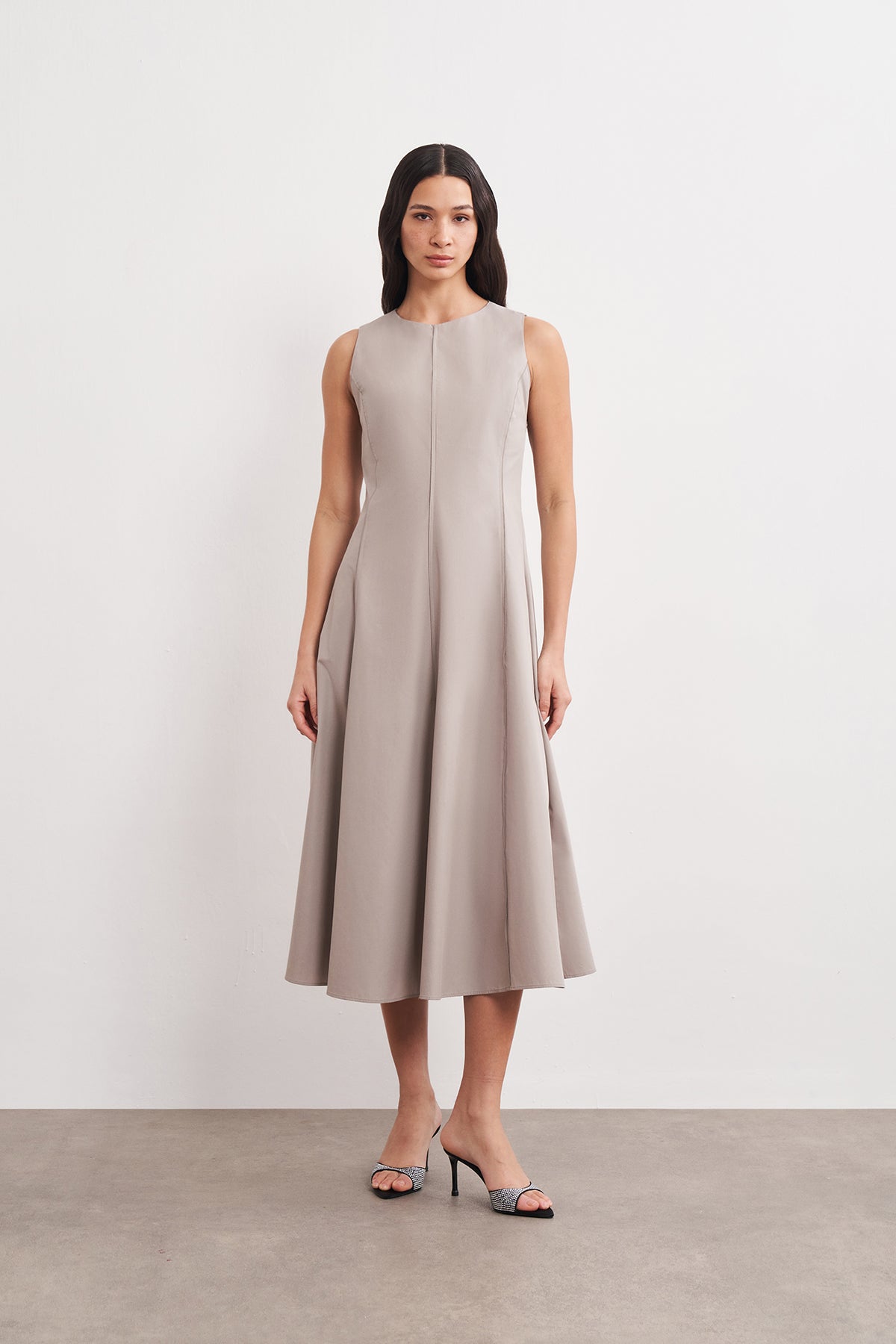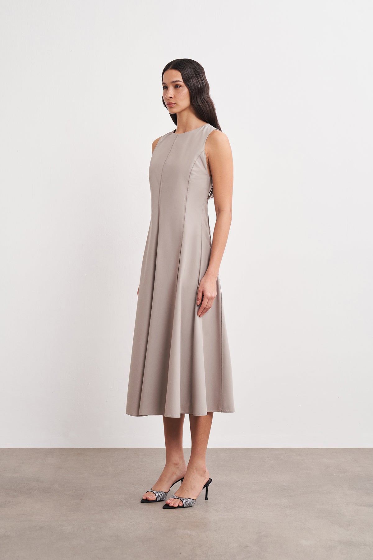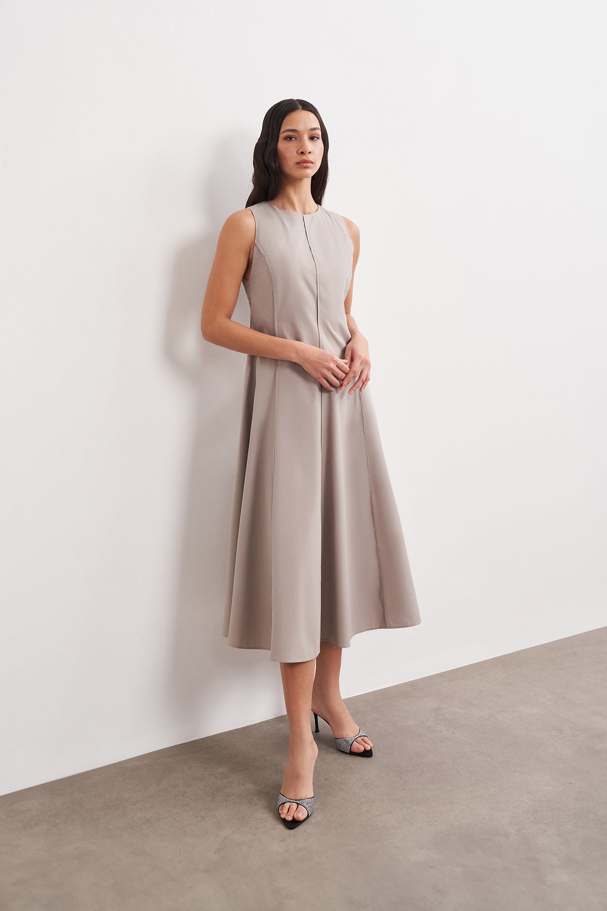 WINGCOTT Volanlı Kolsuz Biyeli Midi Elbise
