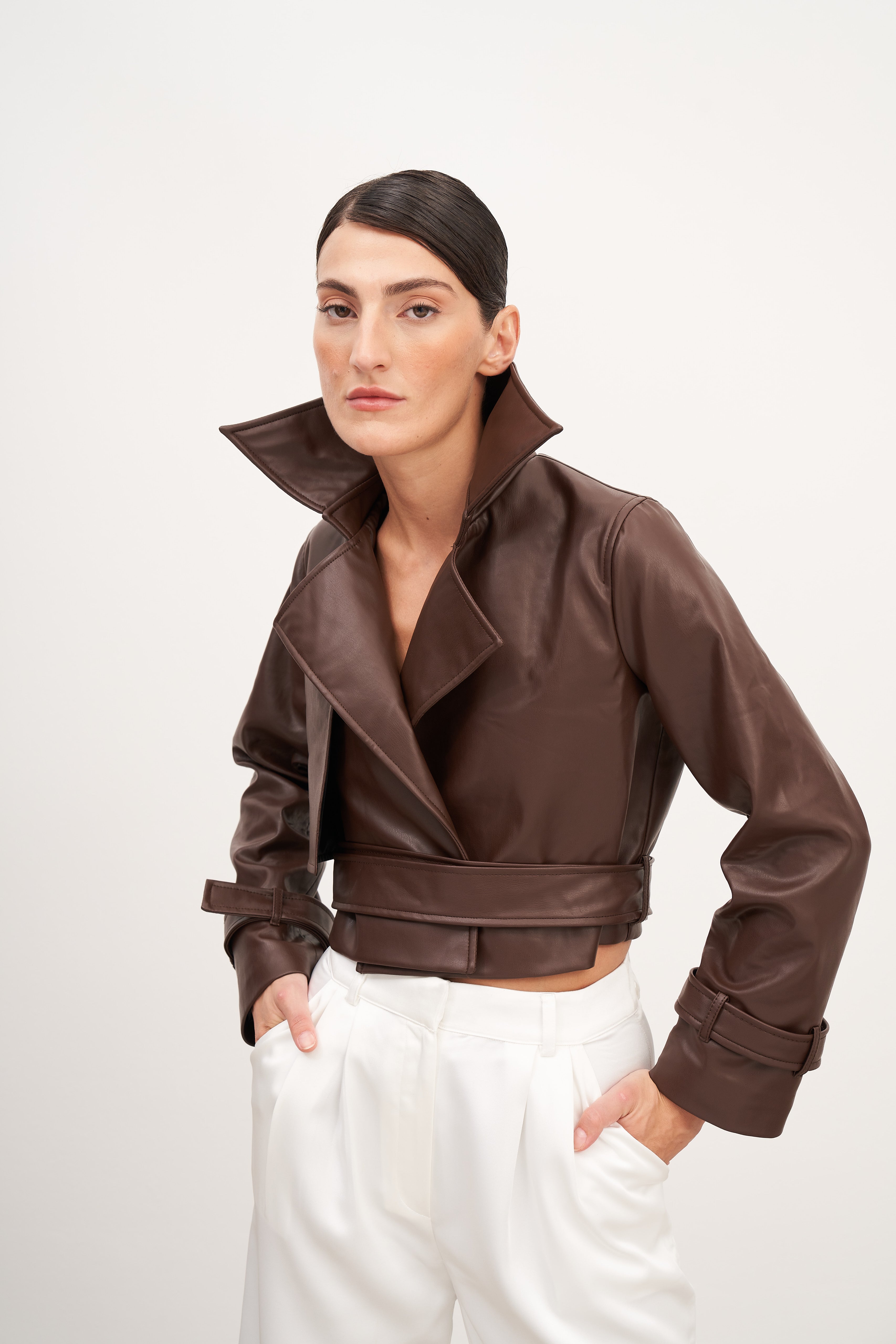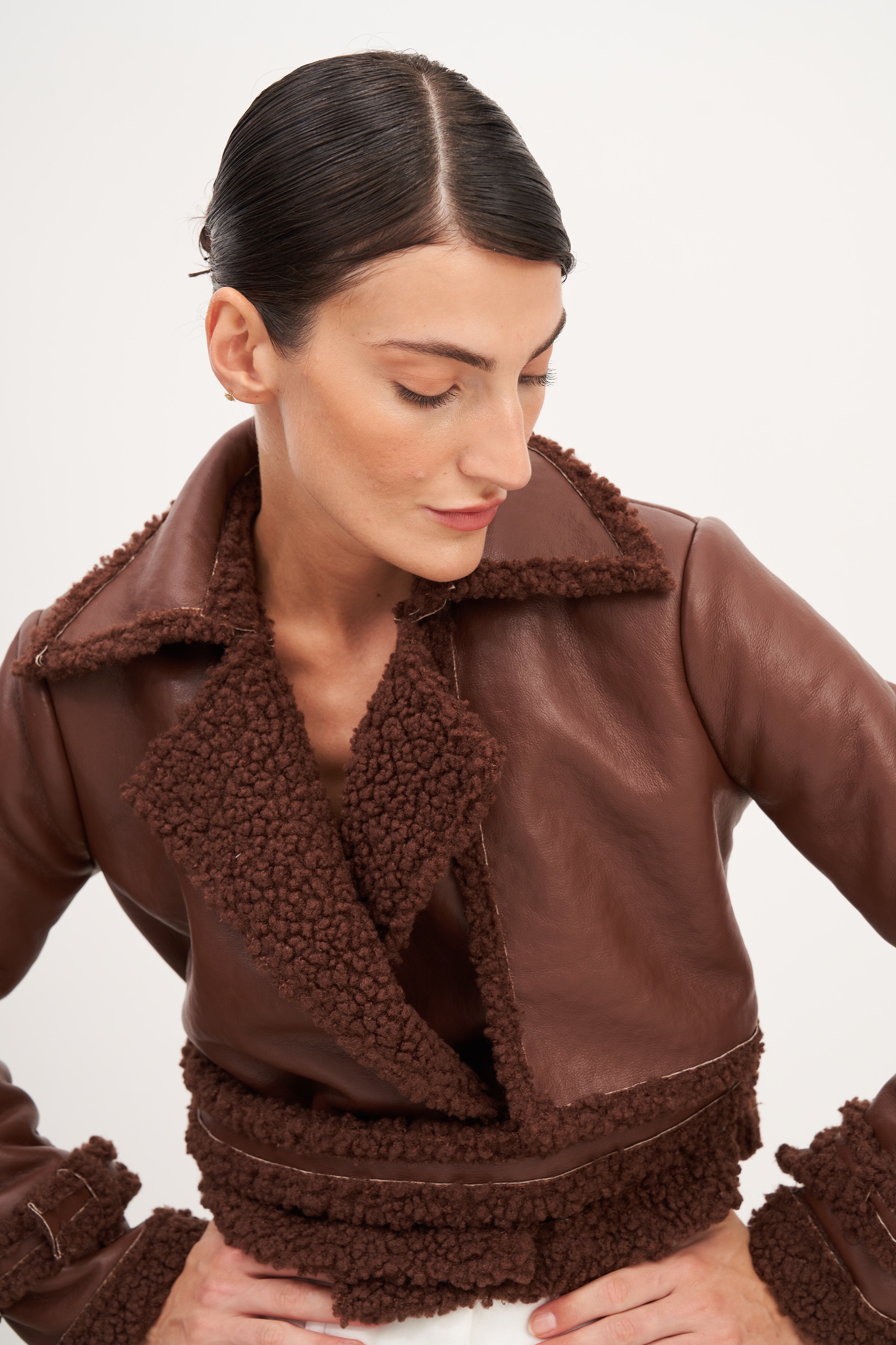 Acı Kahve Süet Kemerli Kısa Ceket -