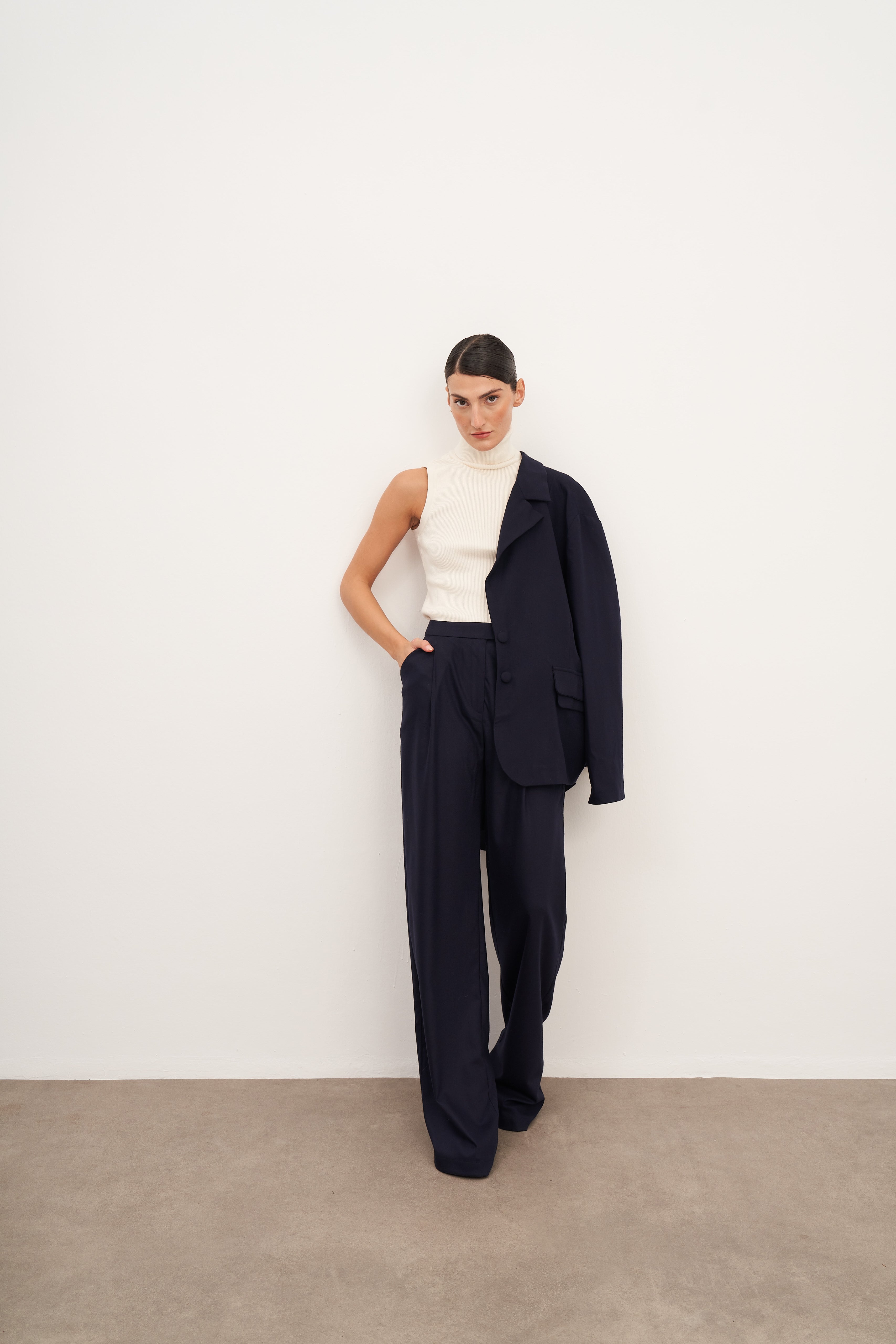 Siyah Çift Pileli Hotfix Havuç Kesim Pantolon