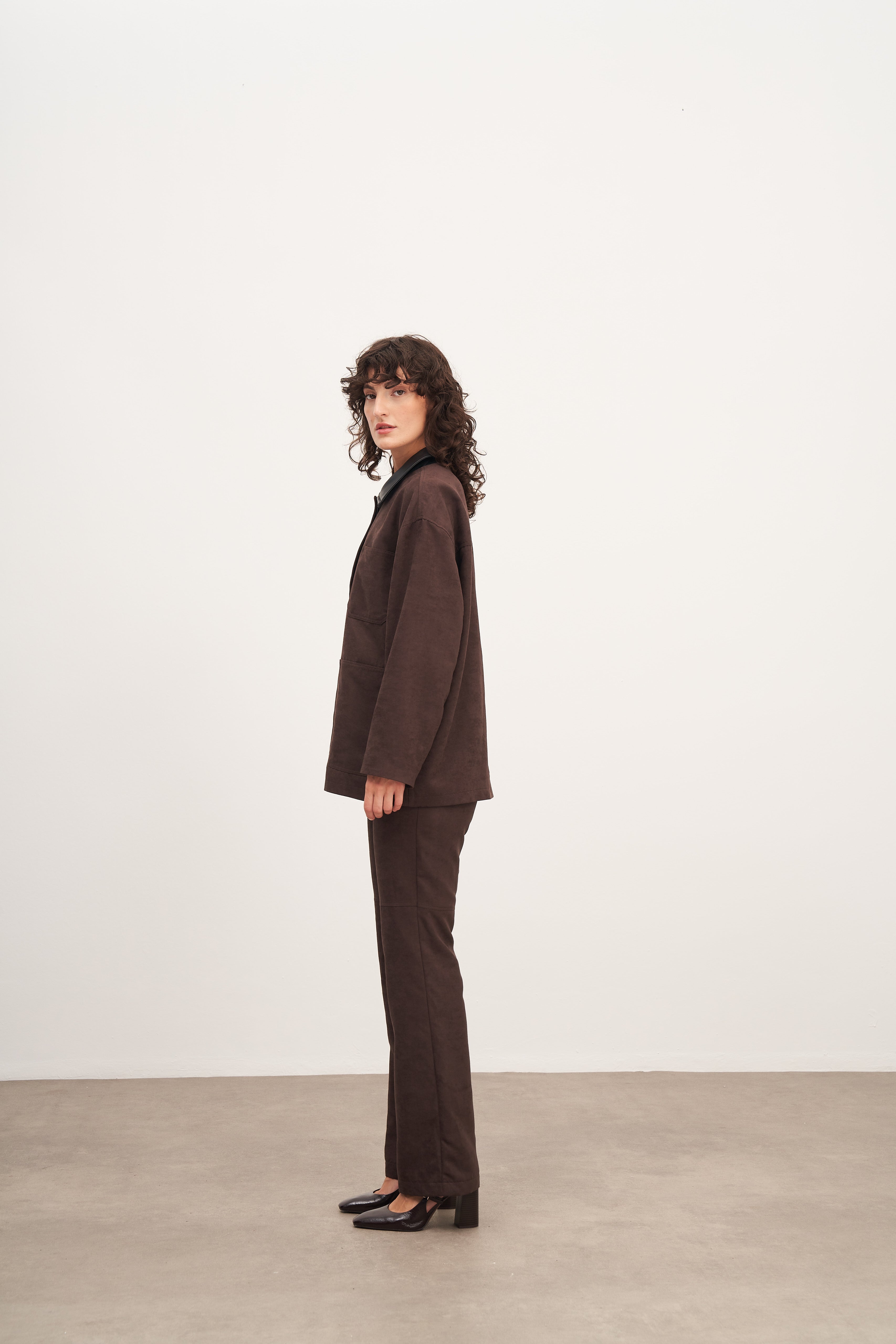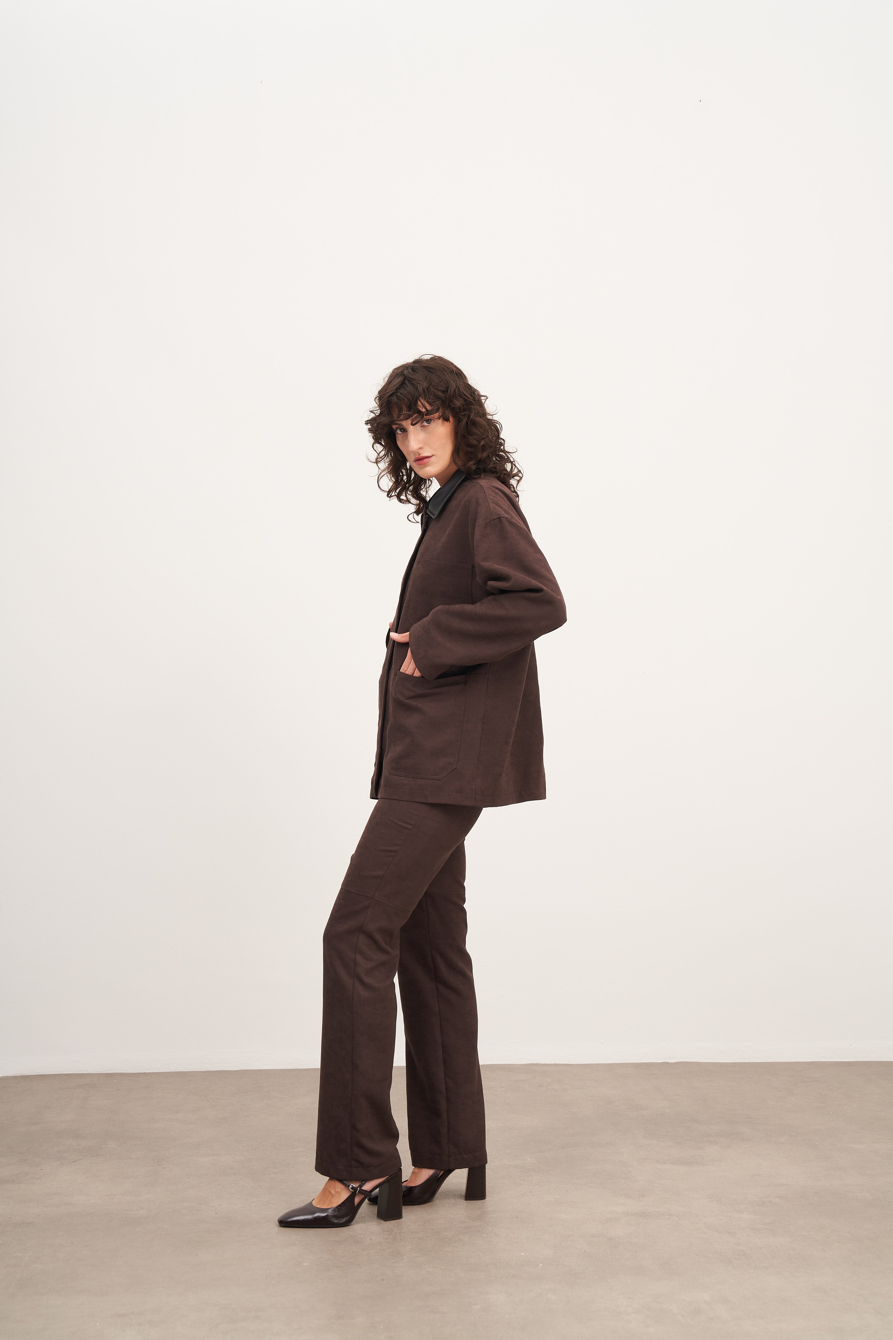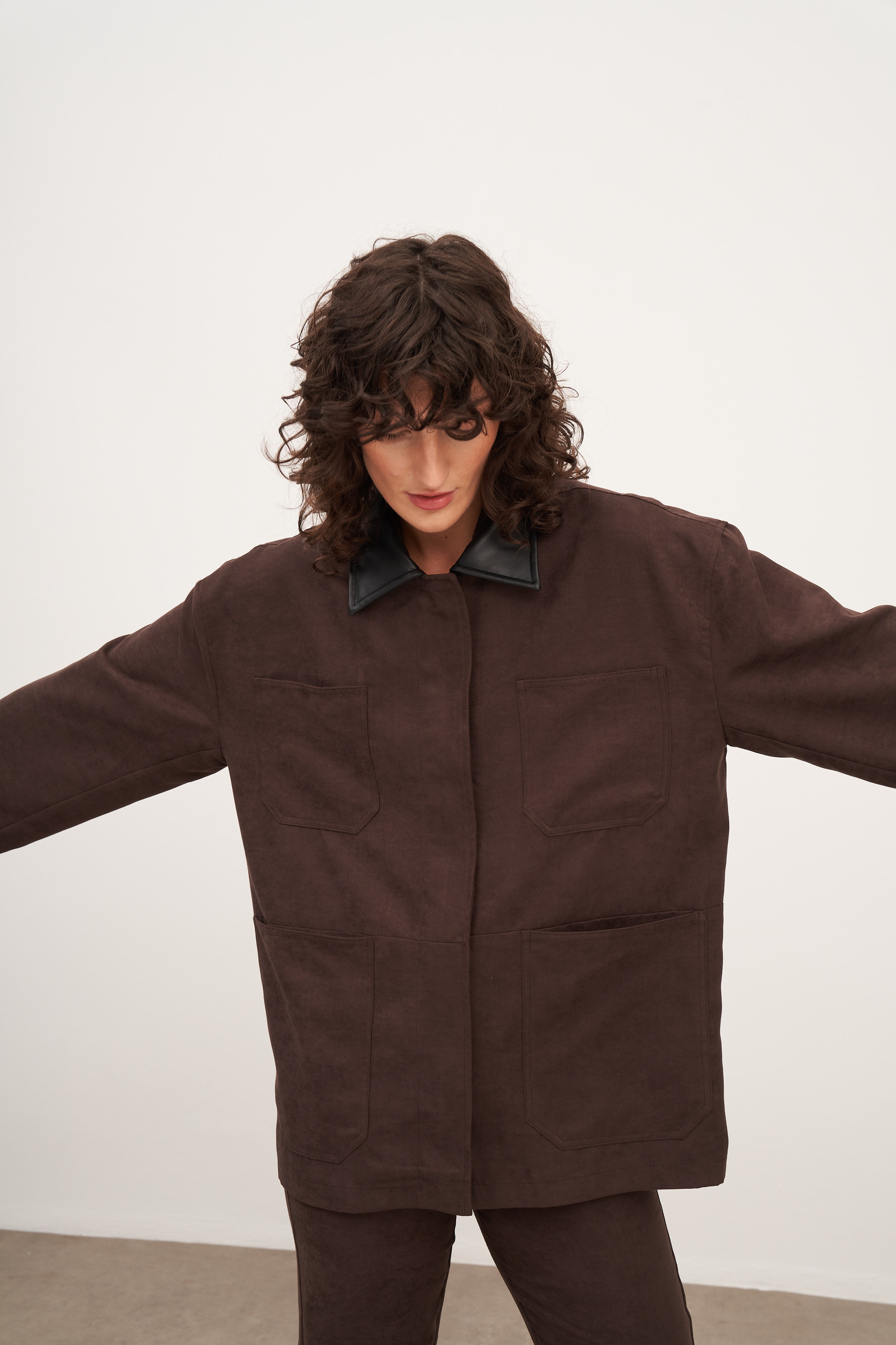 WINGCOTT Acı Kahve Süet Deri ve Cep Detaylı Ceket