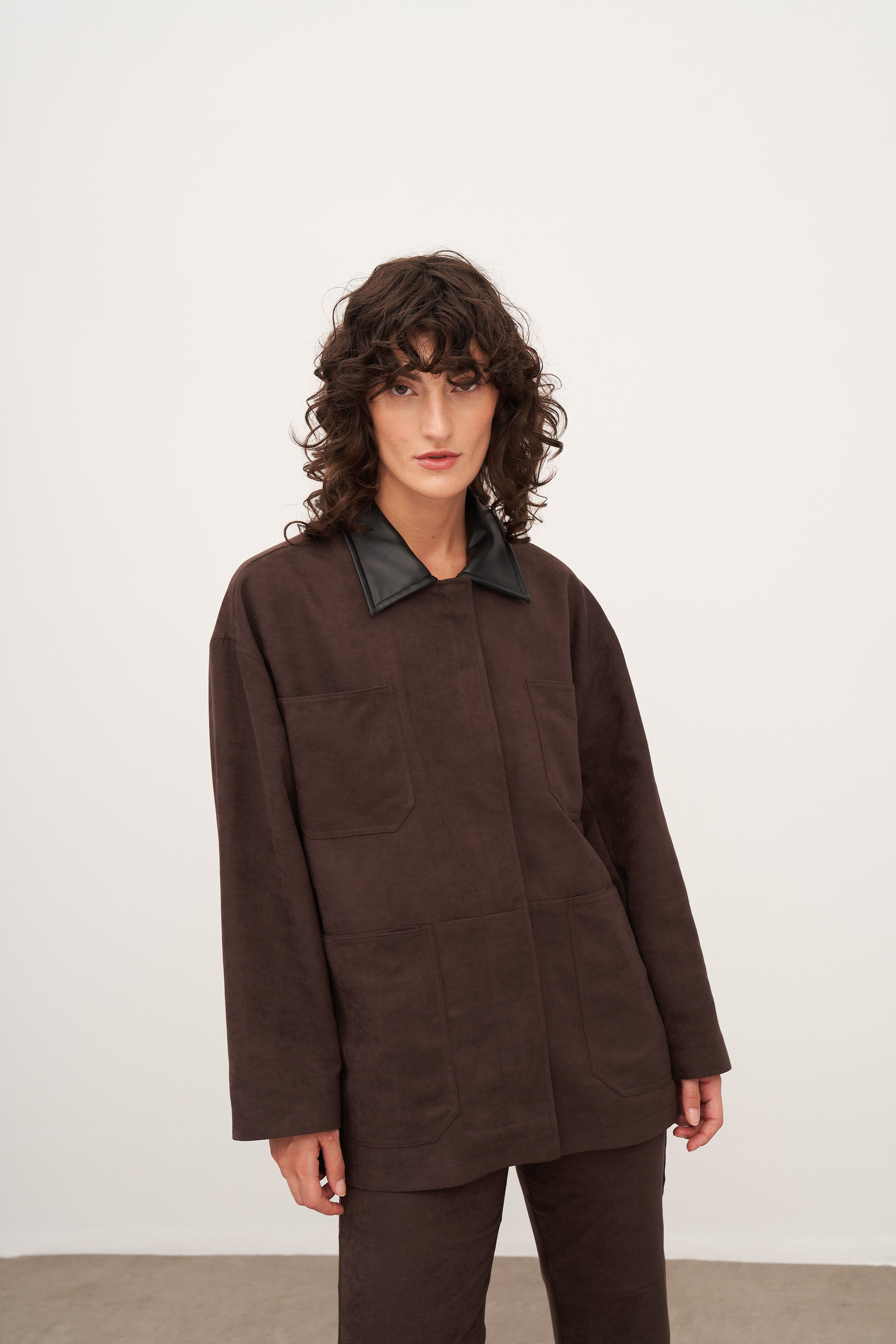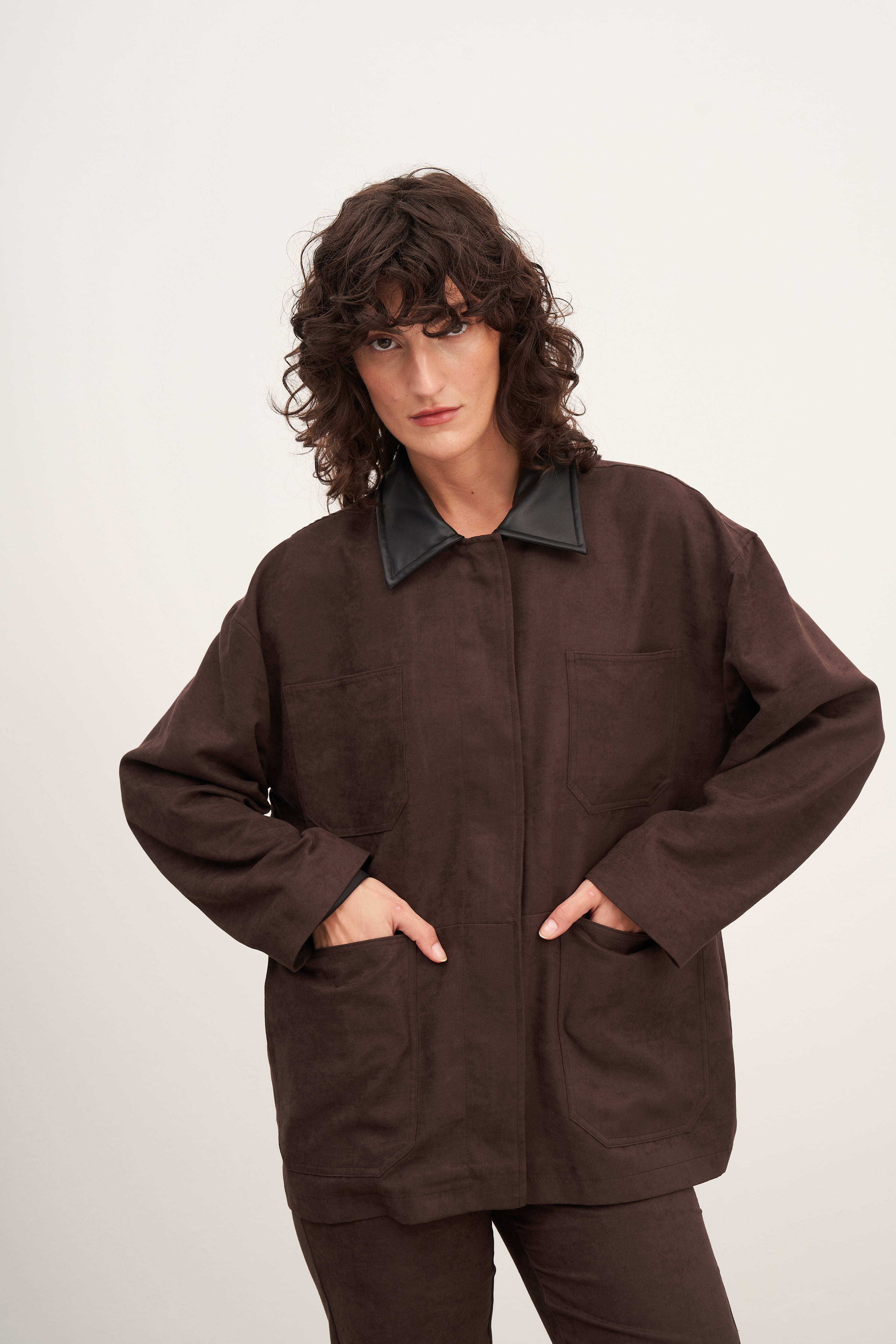 Acı Kahve Süet Deri ve Cep Detaylı Ceket