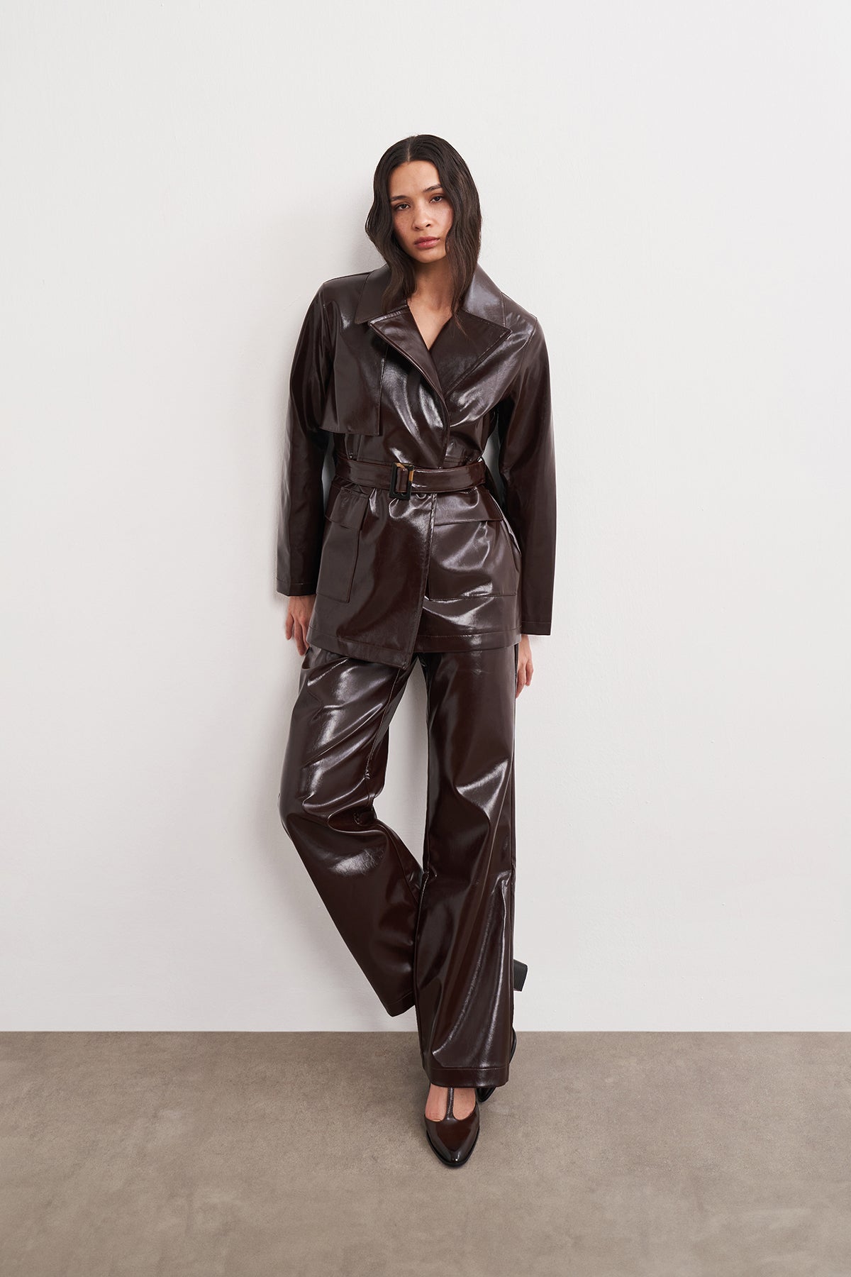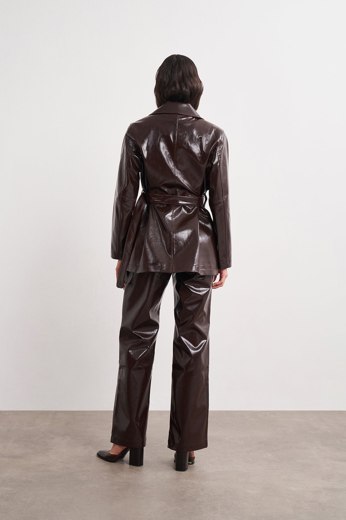 WINGCOTT Acı Kahve Damarlı Deri Pantolon