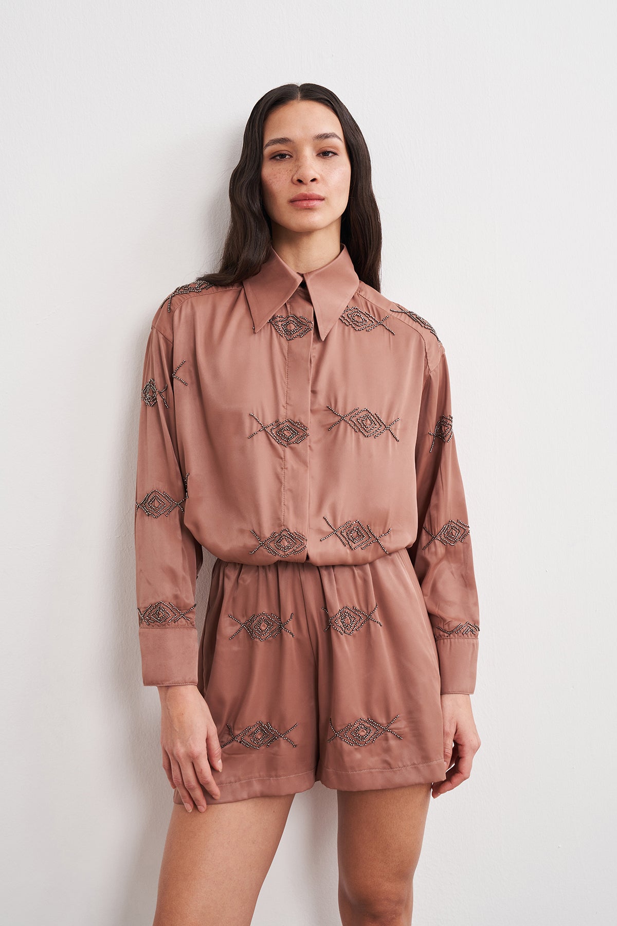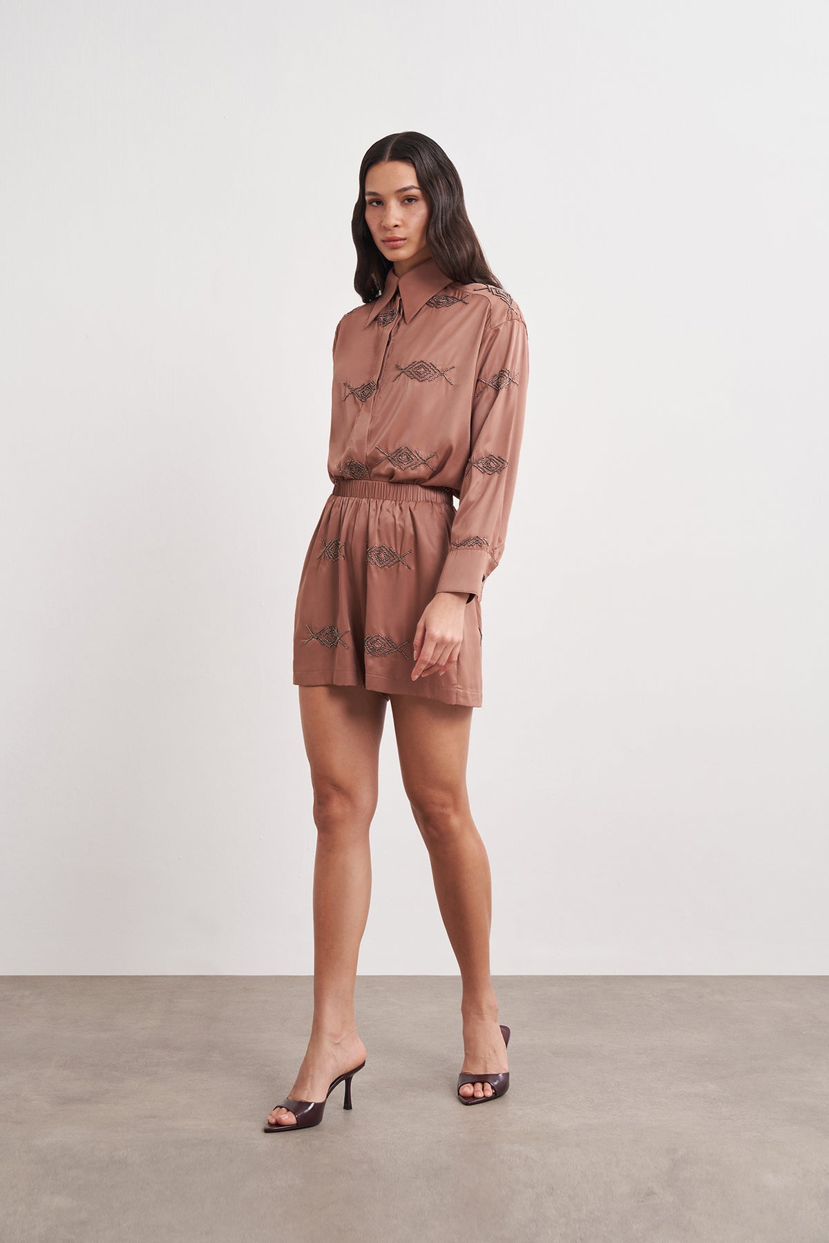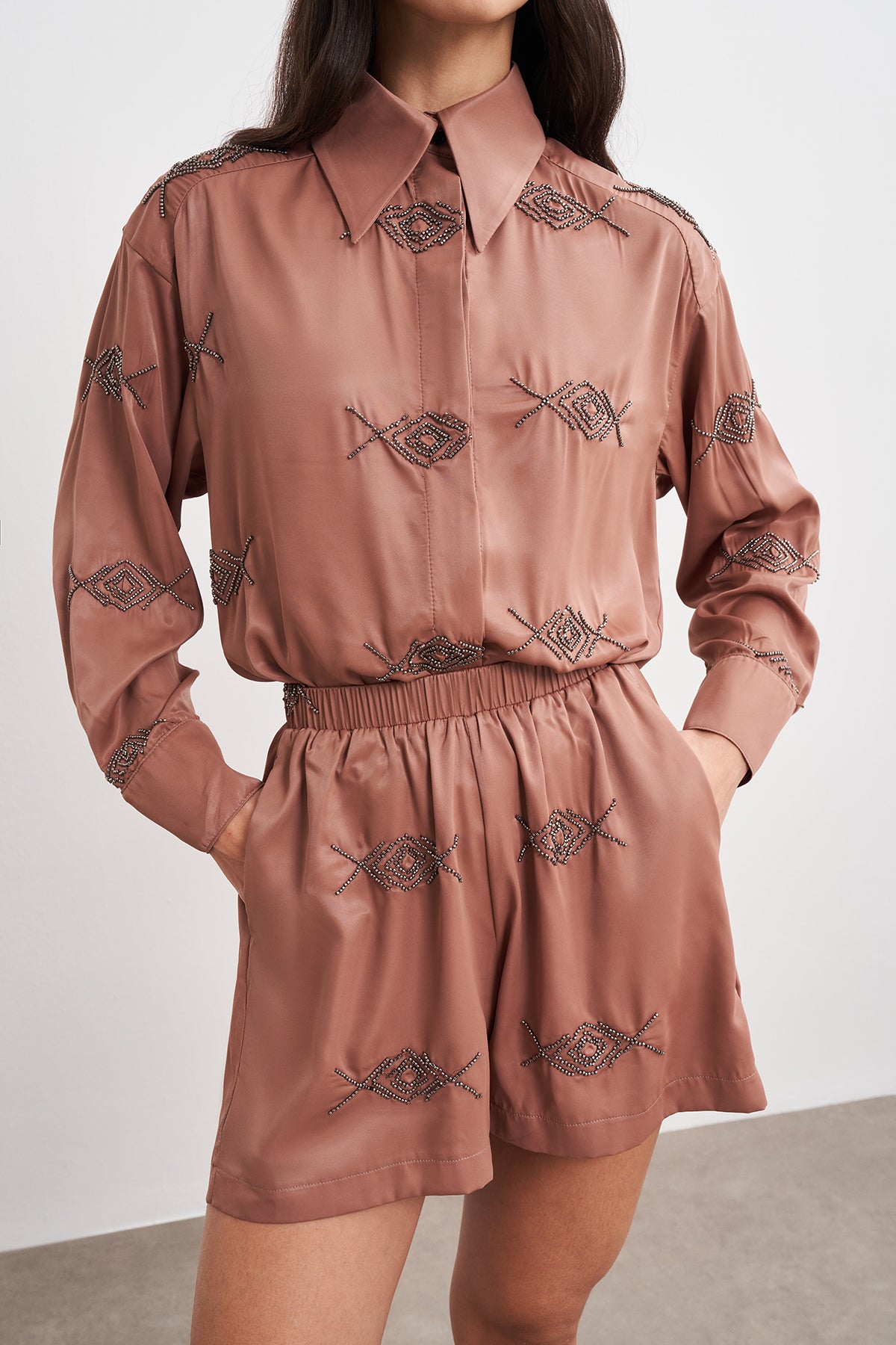 Boncuk İşlemeli Beli Lastikli Rahat Şort
