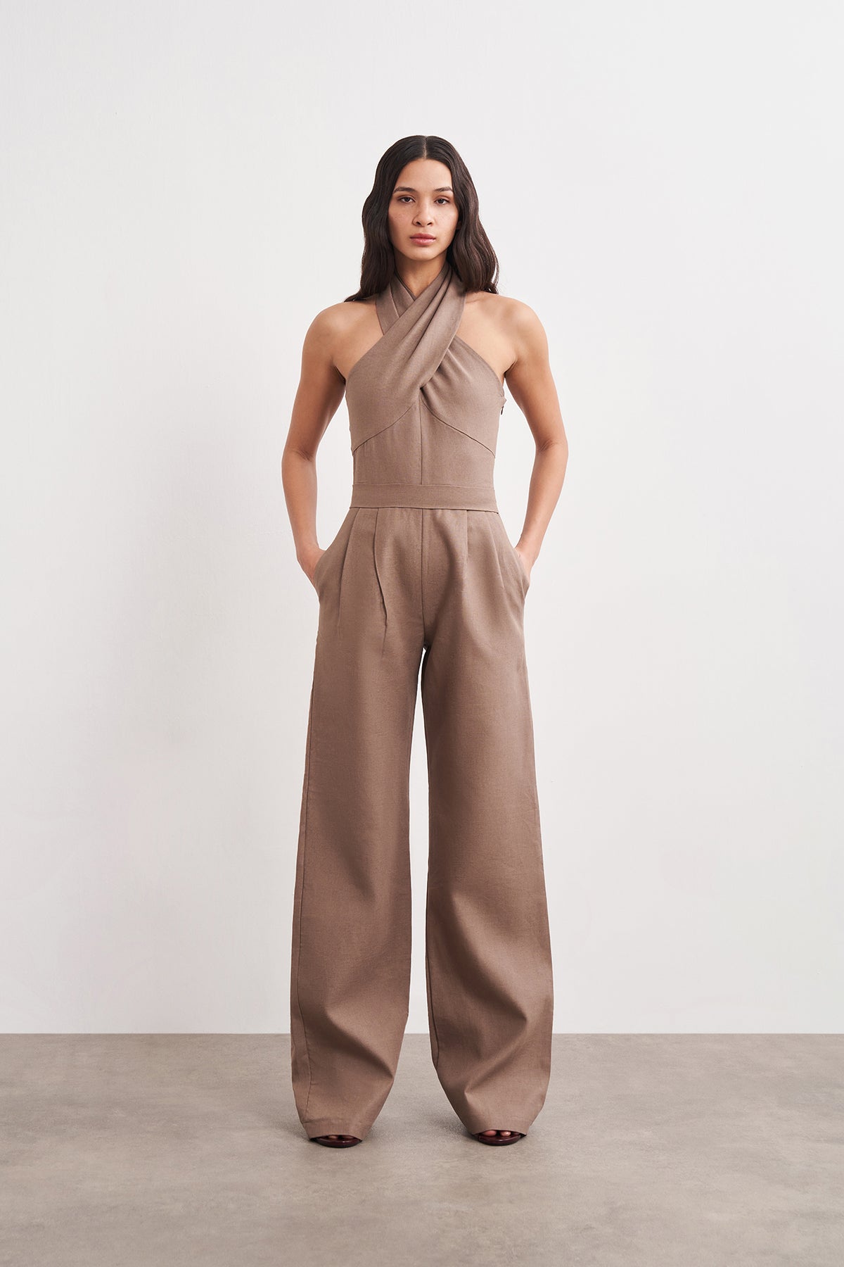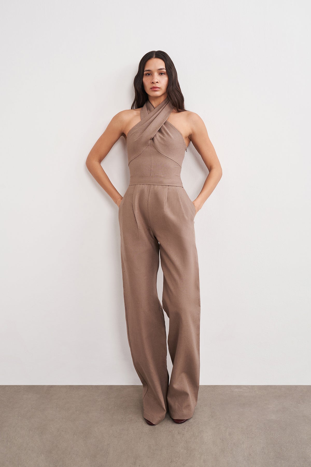 WINGCOTT Çapraz Bağlamalı Keten Tulum