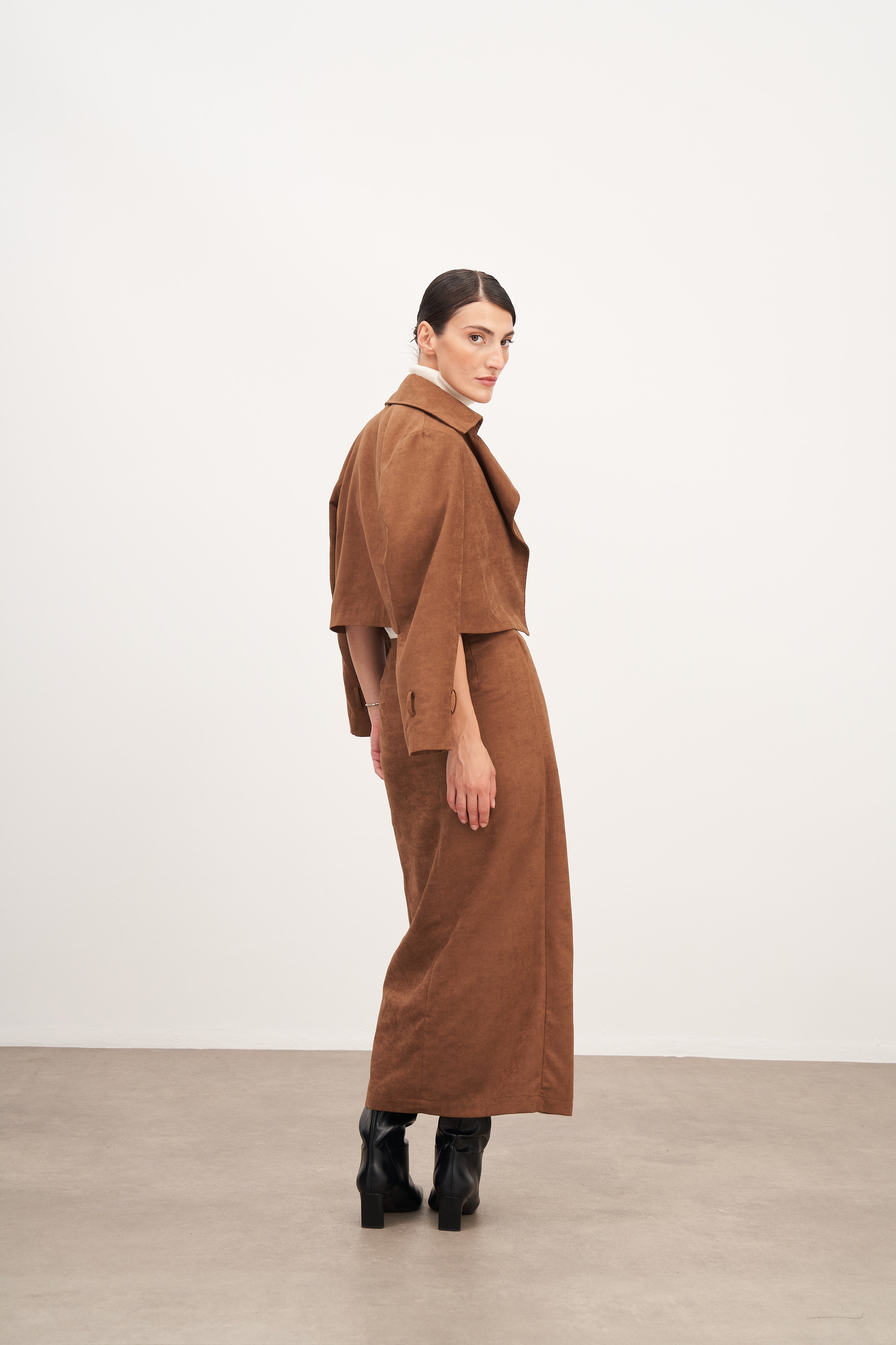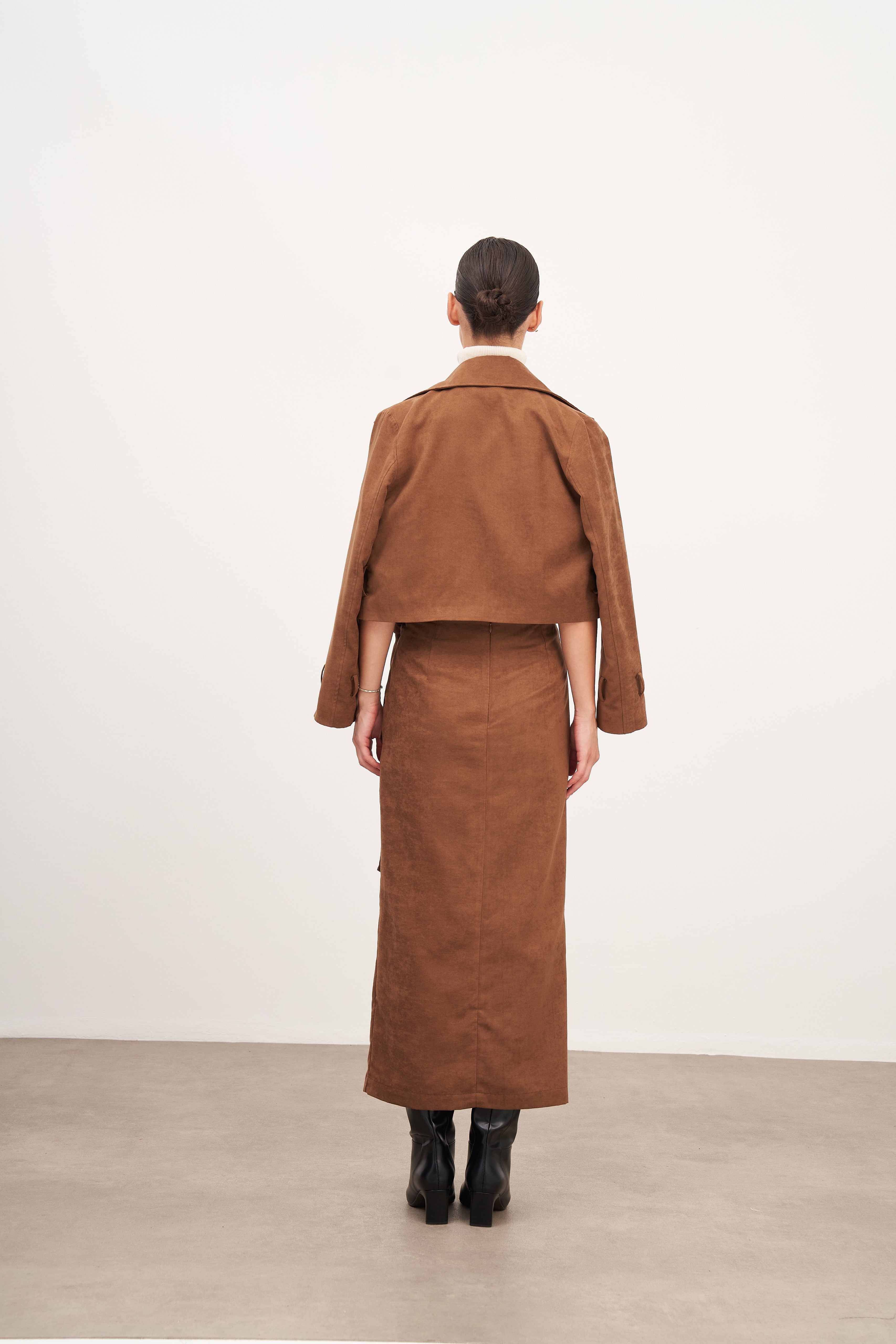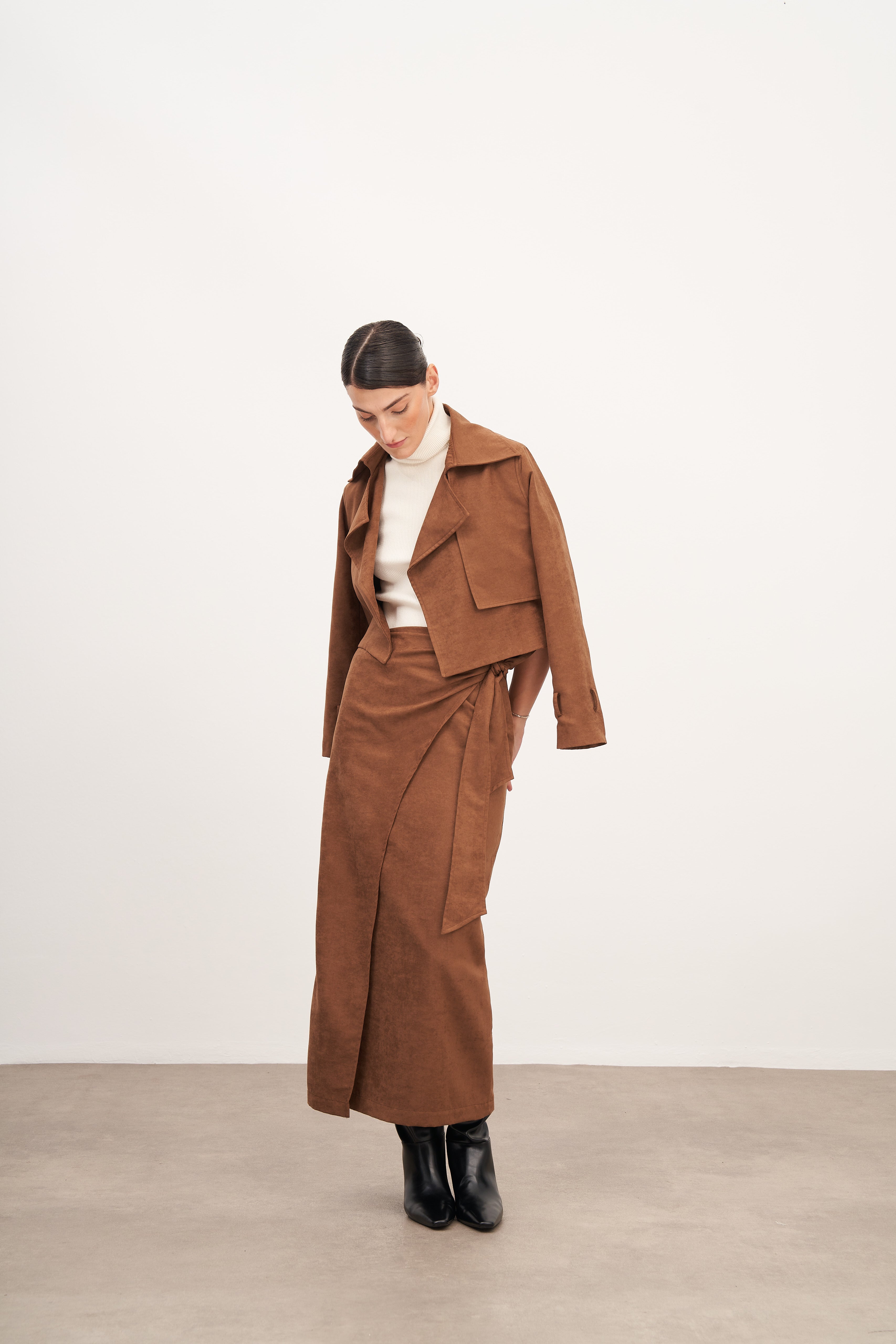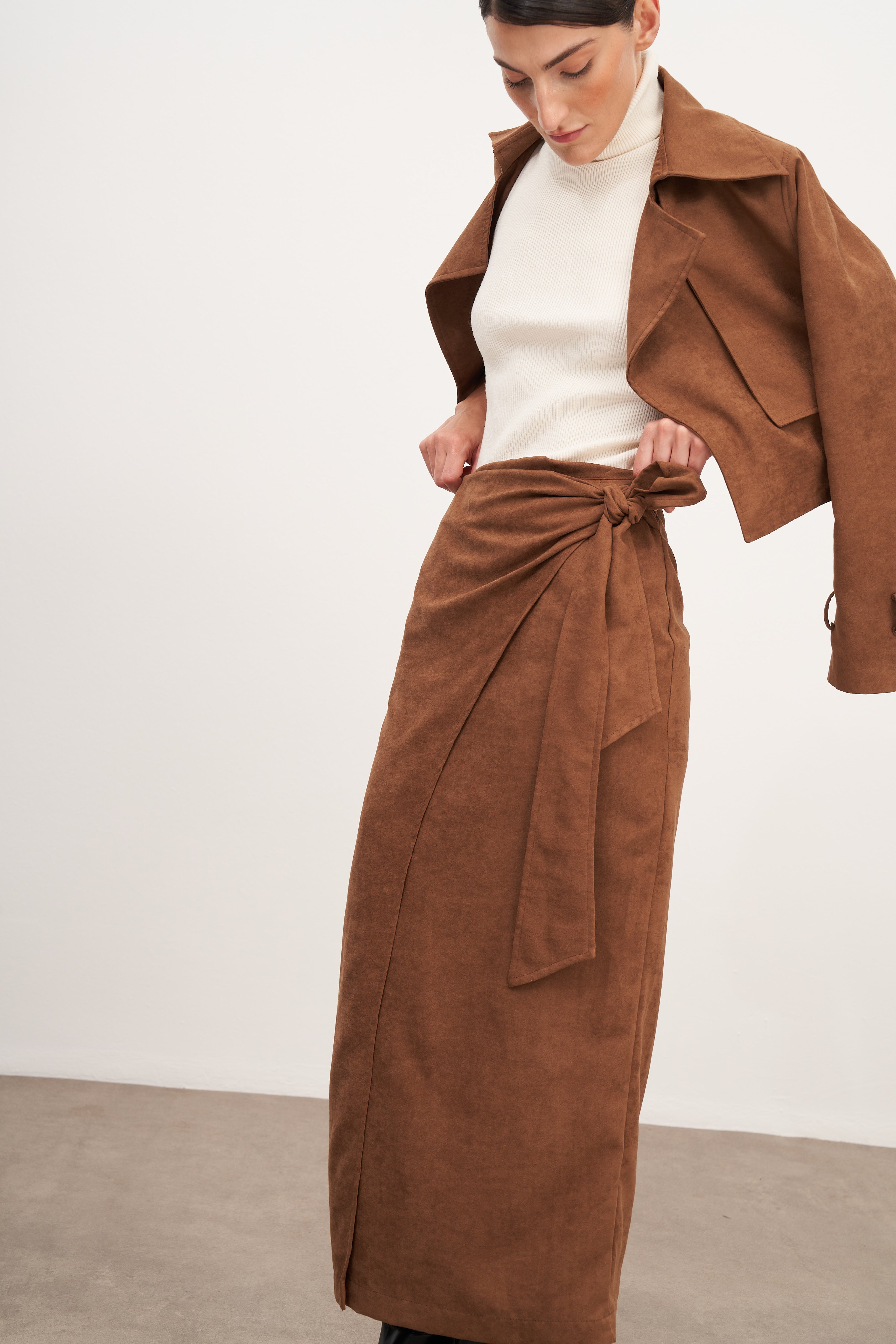 Taba Süet Bağlamalı Uzun Etek