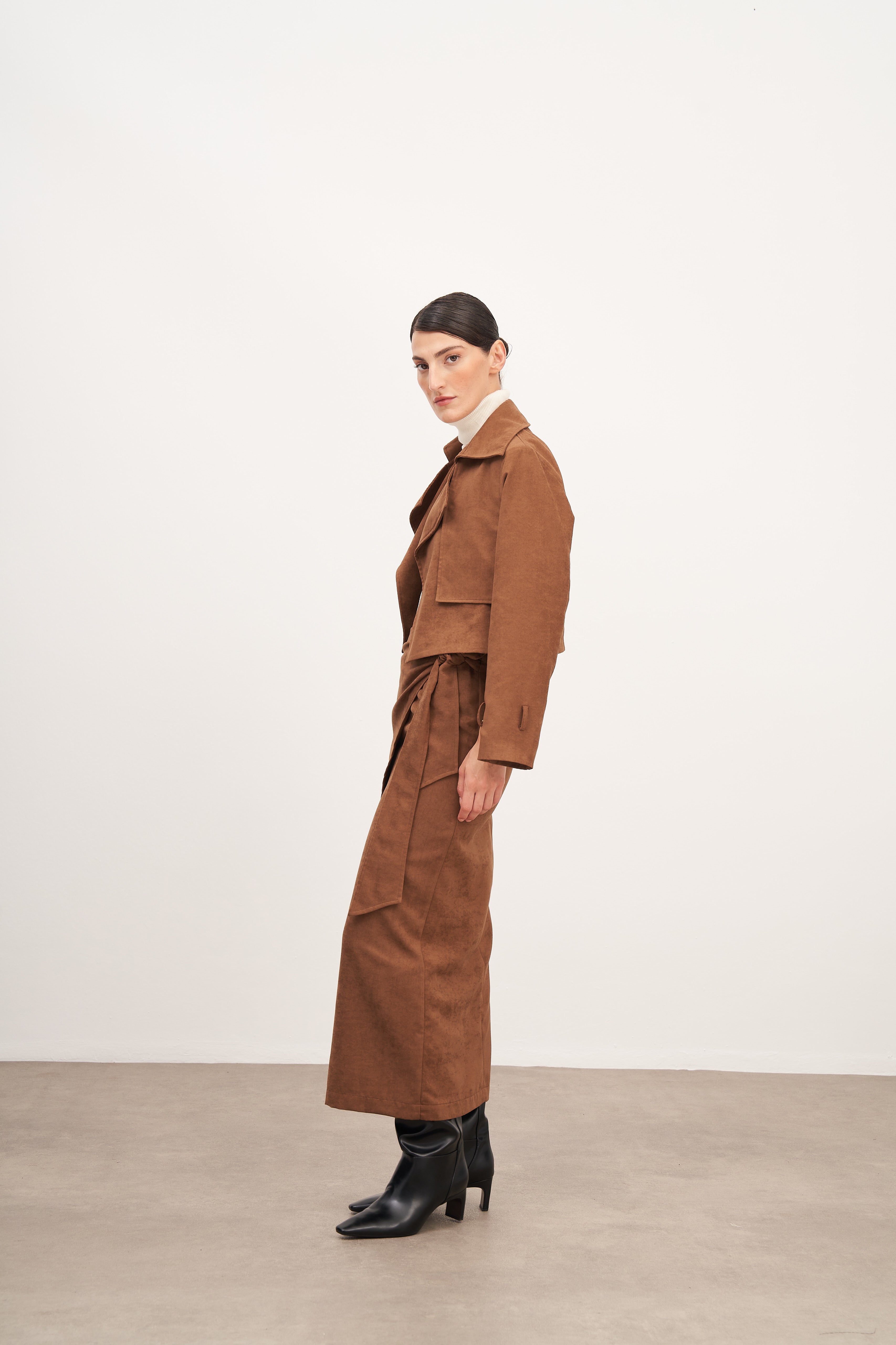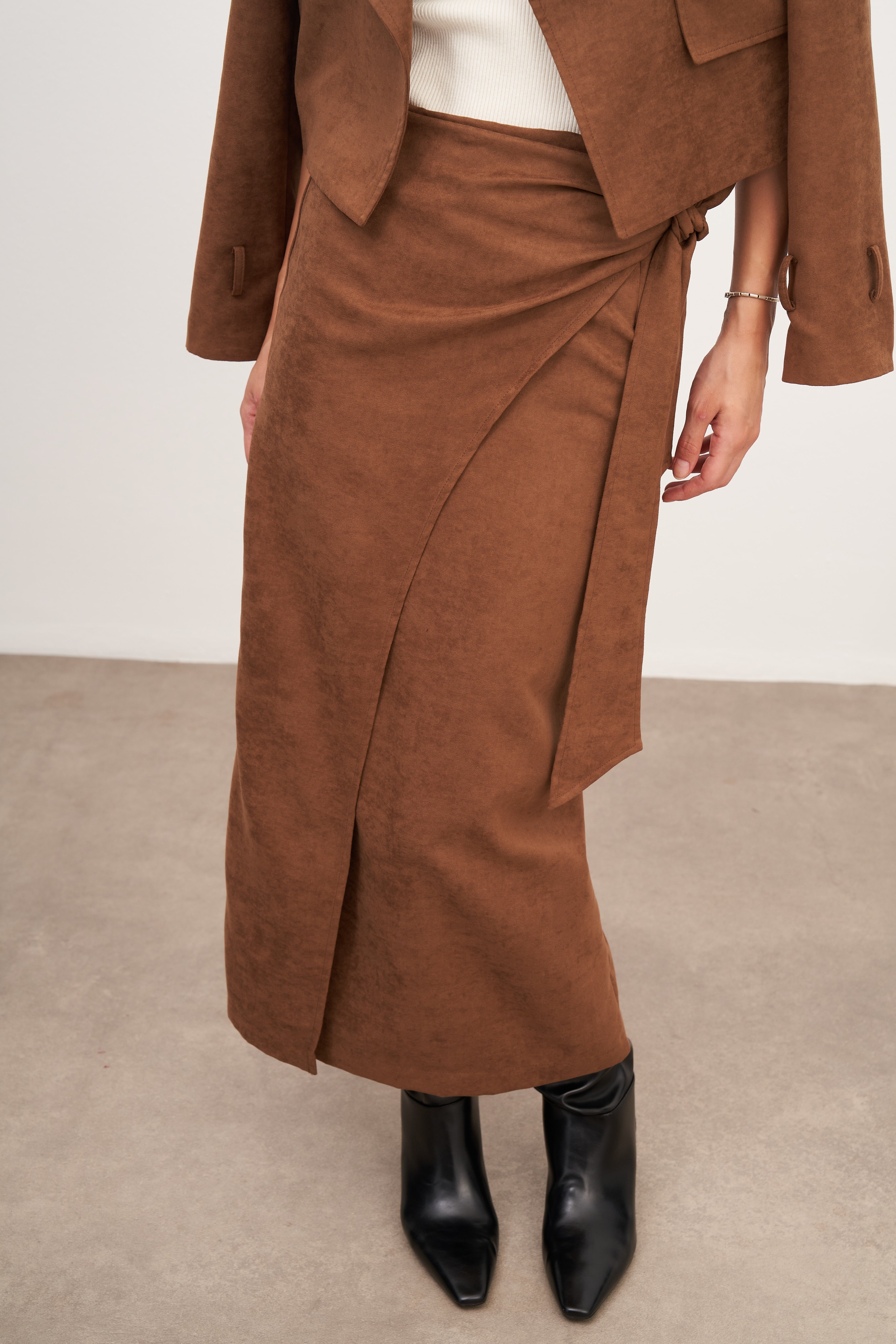 WINGCOTT Taba Süet Bağlamalı Uzun Etek