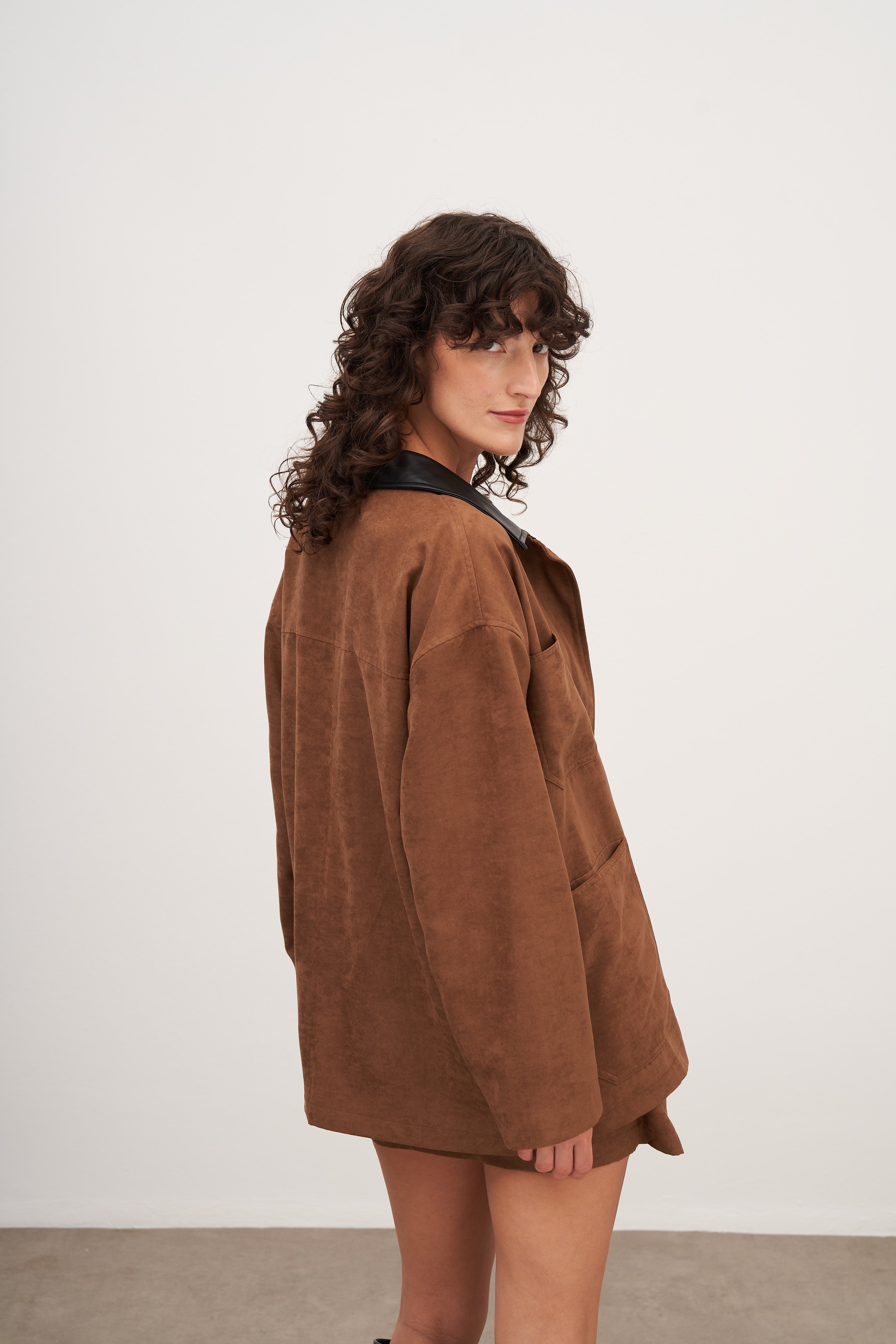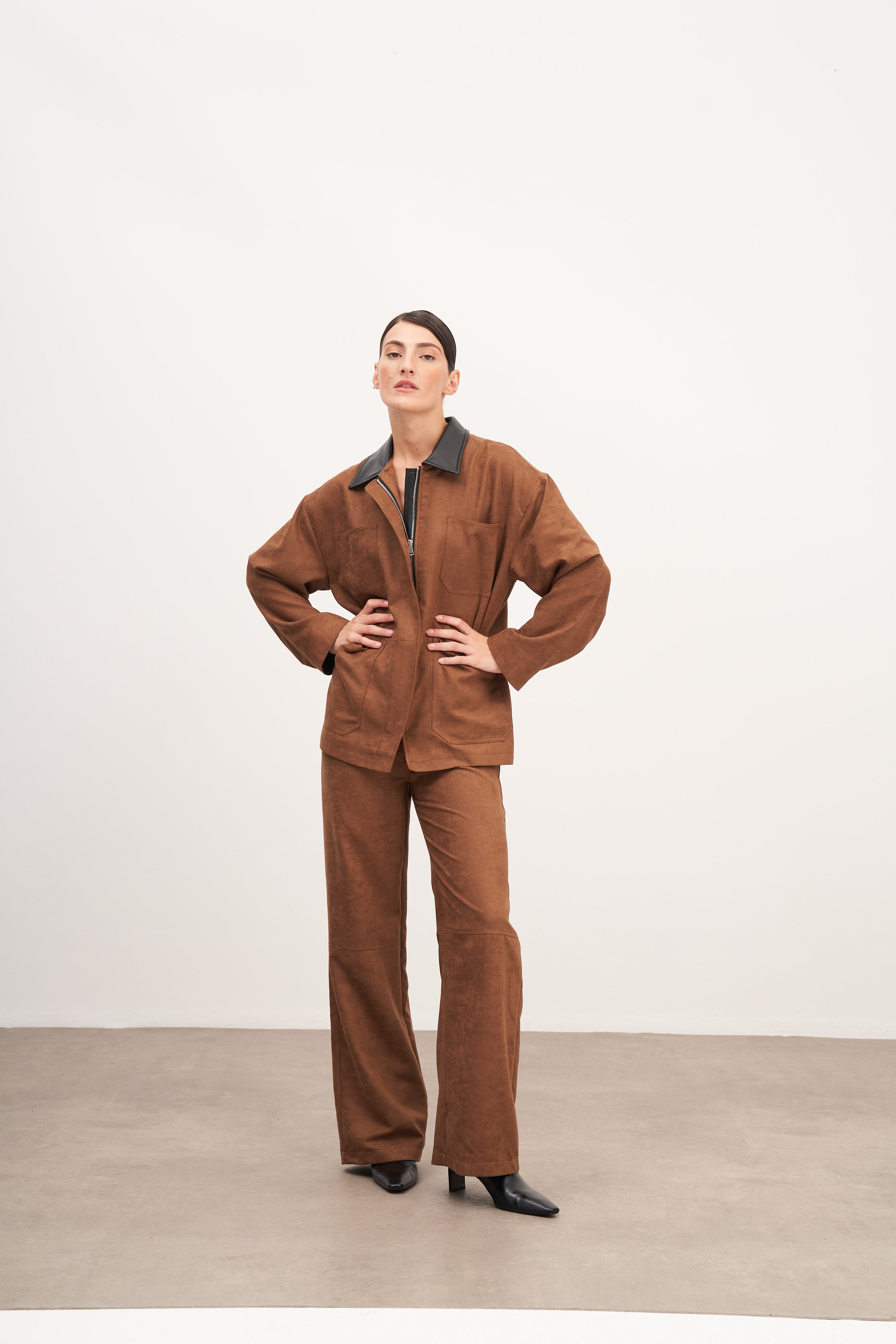 WINGCOTT Taba Süet Deri ve Cep Detaylı Ceket